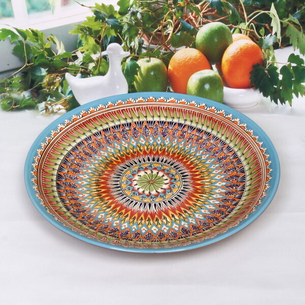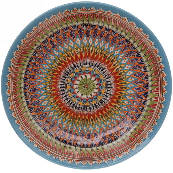 Погрузитесь в атмосферу восточной кухни с нашим ляганом плоским 42см синим, выполненным из высококачественной керамики. Этот ляган не только привнесет яркие цвета в ваш стол, но и станет настоящим украшением вашего дома. Яркий орнамент, состоящий из геометрических фигур, добавляет уникальности и стиля, делая его идеальным для подачи блюд на праздничный стол или для повседневного использования.
