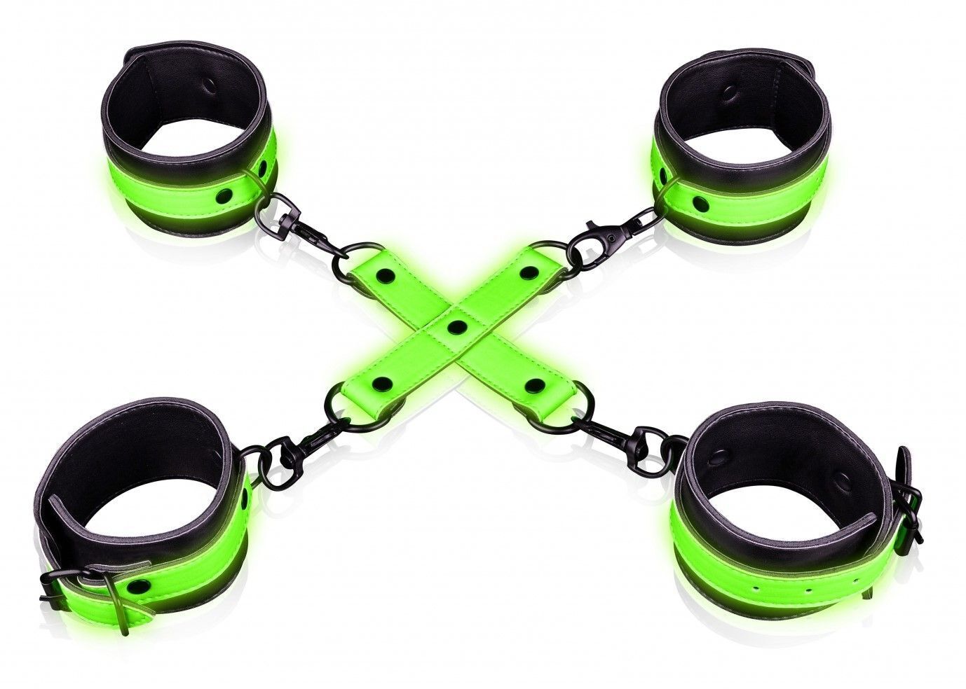 Погрузитесь в мир новых ощущений с люминесцентными наручниками и поножами Ouch! Эти универсальные оковы созданы для тех, кто хочет добавить элемент приключения в свои эротические ролевые игры и практики БДСМ. Они выполнены из нежной экокожи, что обеспечивает комфорт и долговечность в использовании.