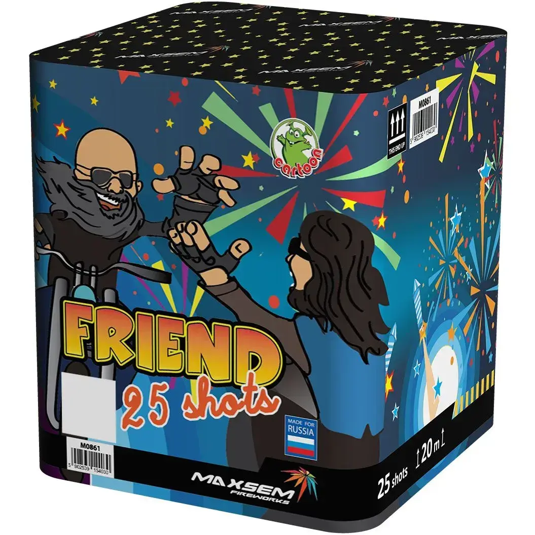 Создайте незабываемую атмосферу на вашем празднике с батареей салютов «Друг». Это пиротехническое изделие, состоящее из 25 выстрелов, подарит вам и вашим близким яркие эмоции и радость. Яркая упаковка с мультяшными персонажами и праздничными элементами создаст настроение веселья и уюта.