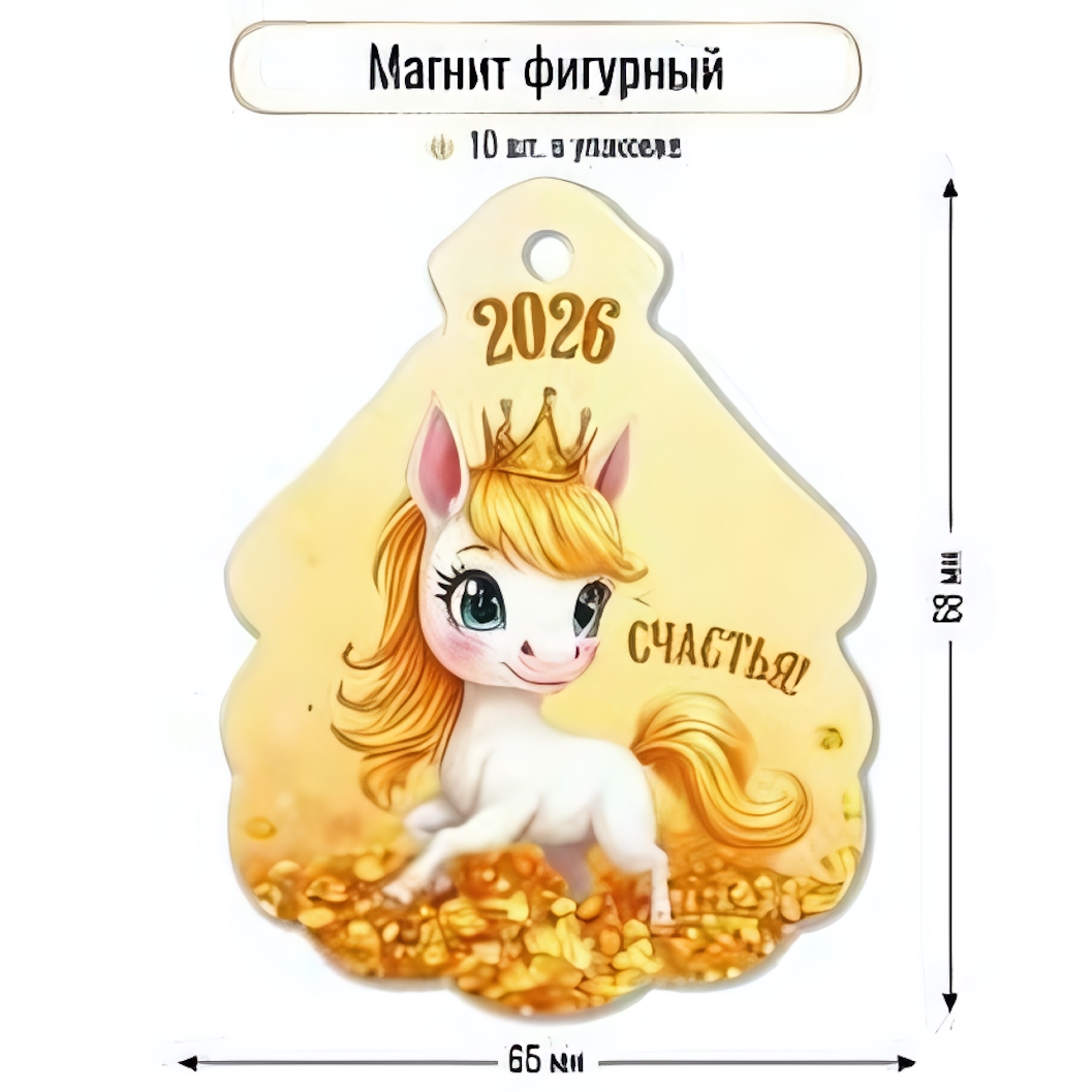 Яркий и праздничный магнит в форме ёлочки — это стильный акцент для новогоднего декора и душевный сувенир. Его выразительный дизайн с белым единорогом в золотой короне на фоне россыпи золотых монет моментально поднимает настроение и создаёт атмосферу тепла и удачи в новом году.