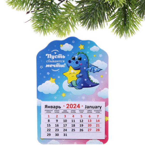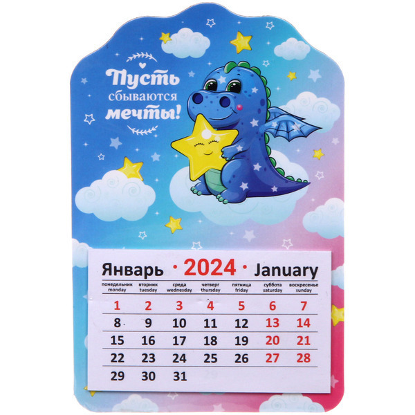 Этот яркий магнит-календарь «Дракончик Твини» станет не только стильным элементом декора, но и незаменимым помощником в организации вашего времени. С его помощью вы сможете легко отслеживать важные даты и события, а также вдохновляться на новые достижения. Яркий дизайн с мультяшным драконом и надписью «Пусть сбываются мечты!» создаст позитивное настроение в вашем доме.