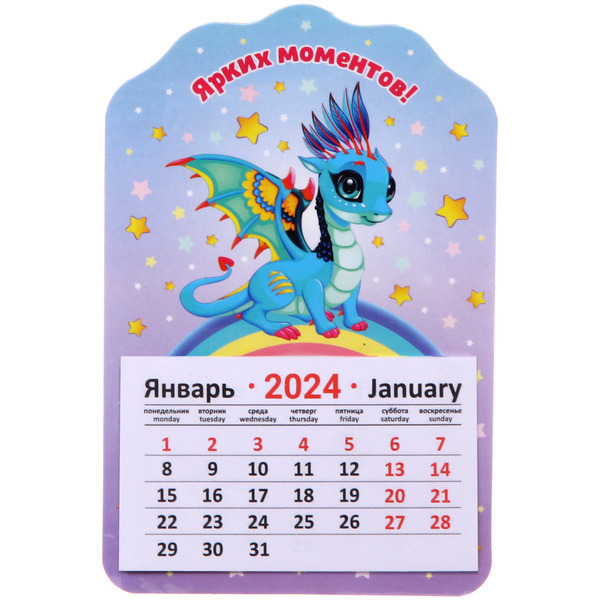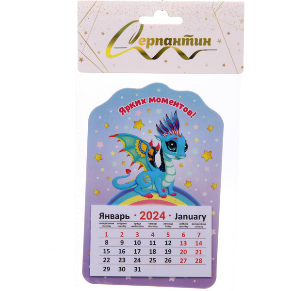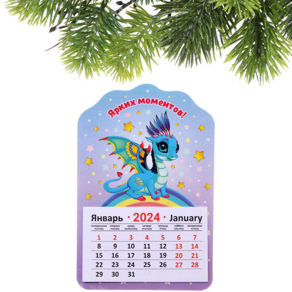 Магнит-календарь идеально подходит для использования в домашних условиях. Его можно разместить на холодильнике или любой металлической поверхности, что делает его доступным для ежедневного использования. Календарь оформлен в виде красочного изображения дракона, что добавляет ему оригинальности и привлекательности.