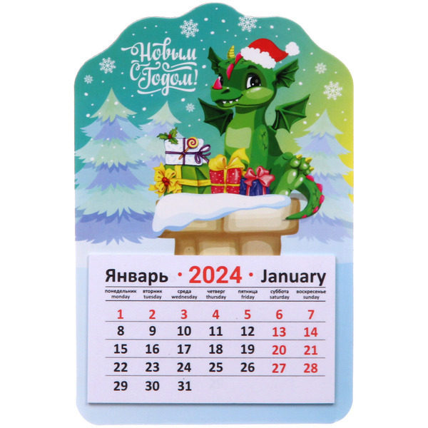 Выбирая магнит-календарь «Хитрый Дракоша Чипа», вы получаете не только функциональный, но и эстетически привлекательный продукт. Яркие цвета и забавный дизайн с изображением дракона в новогодней шапке создают праздничное настроение и поднимают дух. Календарь также включает в себя выделение выходных и праздничных дней, что позволяет легко планировать ваше время.