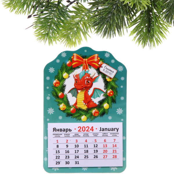 Почему стоит выбрать именно этот магнит-календарь? Во-первых, он выполнен из качественных материалов: магнит и бумага обеспечивают долговечность и надежность. Во-вторых, яркий дизайн с изображением красного дракона и новогодними элементами создаст праздничное настроение. В-третьих, календарь имеет четкую и удобную сетку с днями недели на русском и английском языках, что делает его использование простым и понятным.