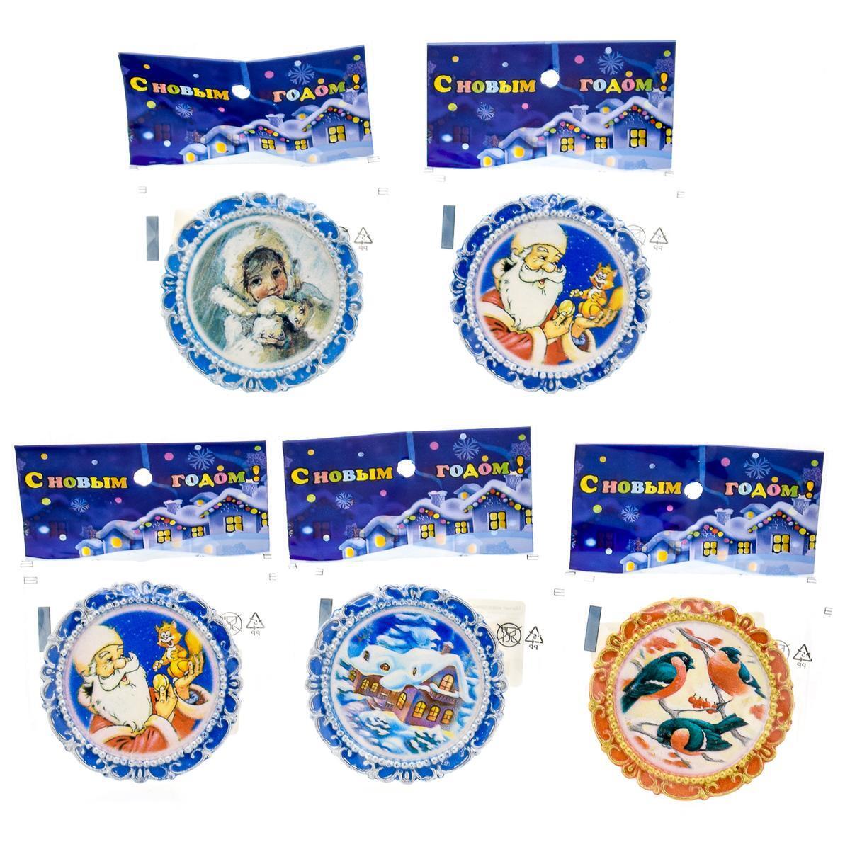 Магнит новогодний круглый, праздничный сувенир с зимними узорами, полимерный, d=5.5 см
