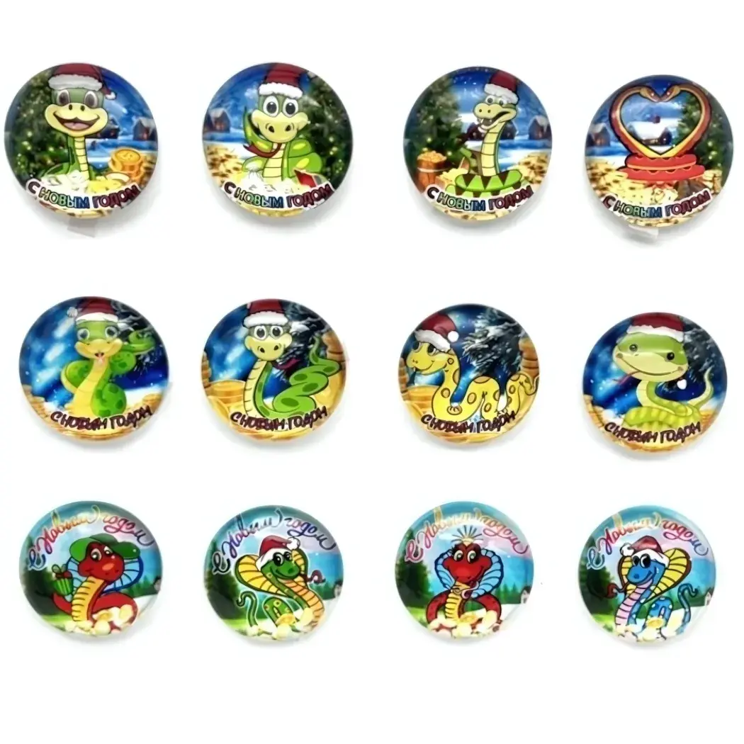 Магнит новогодний "Змея - Хорошие пожелания", 3,5х3,5х1,3 см, микс