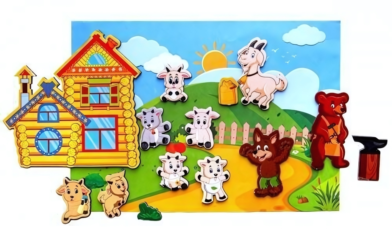 Погрузитесь в мир увлекательных историй с магнитным театром "Волк и 7 козлят". Этот набор станет идеальным помощником для развития речи, фантазии и творческого мышления вашего малыша.