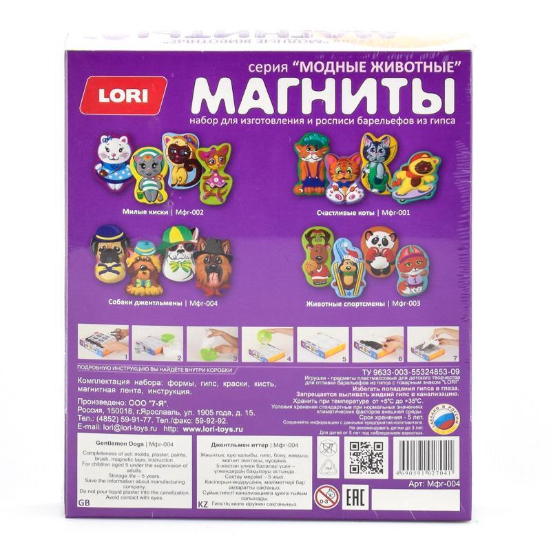 Погрузитесь в увлекательный мир творчества с набором Lori "Собаки джентльмены"! Этот набор позволит вашему ребенку создать забавные и оригинальные магниты в виде очаровательных собачек-джентльменов. Превратите обычный гипс в яркие произведения искусства, которые украсят ваш холодильник или станут прекрасным подарком для друзей и близких.