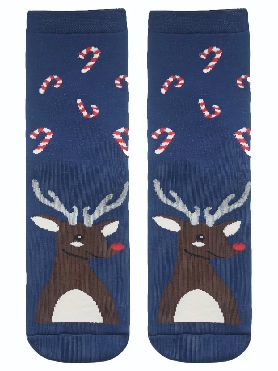 Размер: 23. Цвет: синий. Носки имеют стандартную форму и подходят для большинства обуви. Праздничный дизайн с оленями и полосатыми леденцами делает их идеальными для зимнего сезона и подарков. Не упустите возможность добавить в свой гардероб этот стильный и практичный аксессуар!