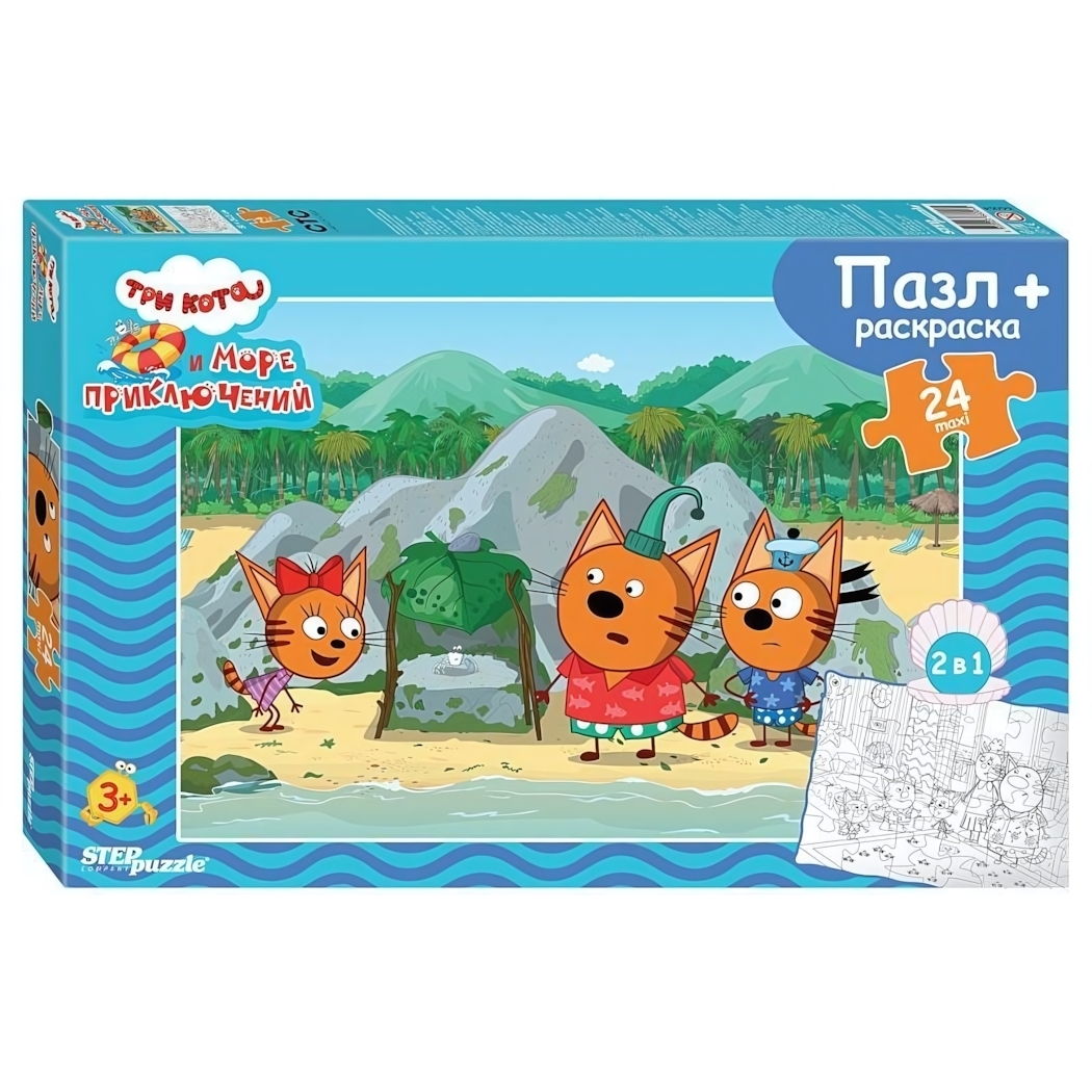Макси-пазл 24 элемента «Три кота и море приключений» с раскраской, картон, 50х34,5 см (Степ Пазл)
