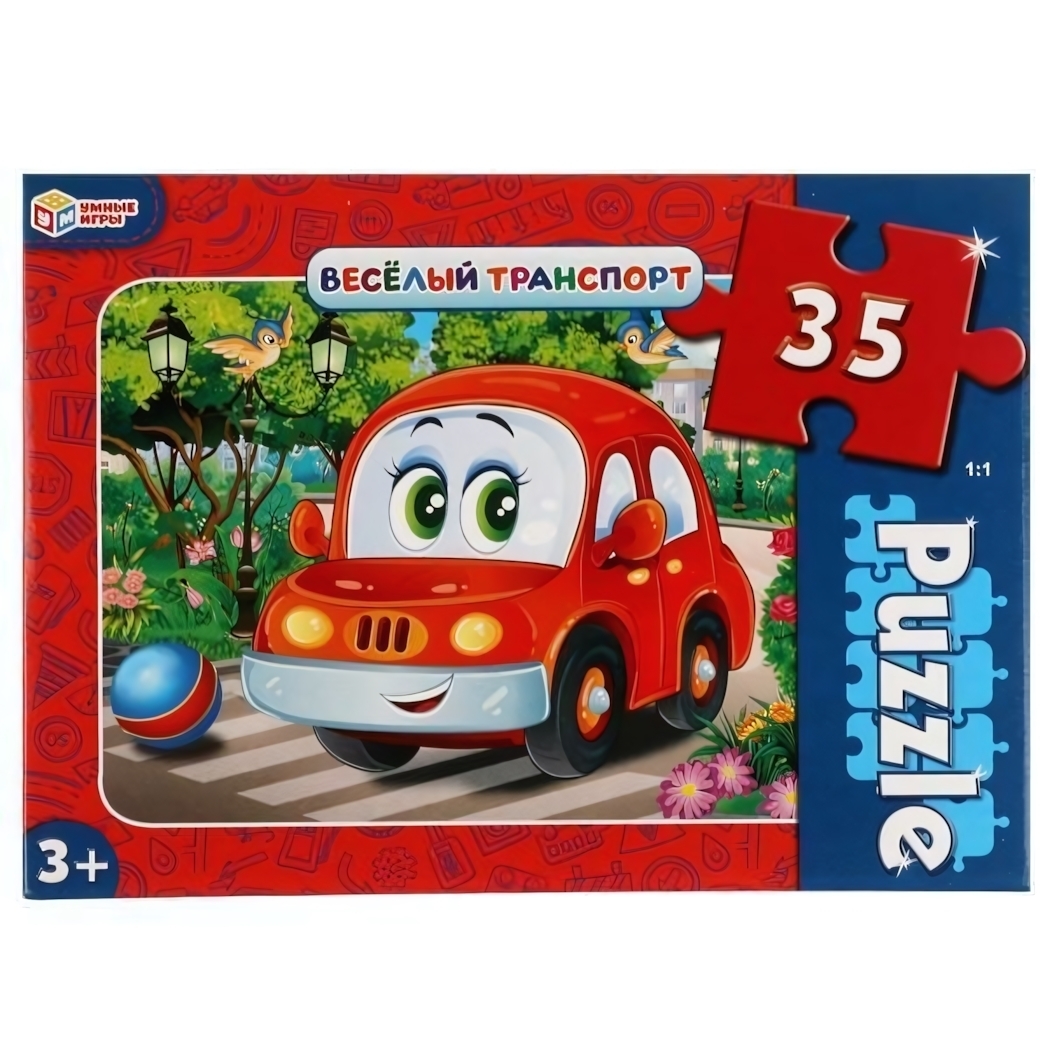 Макси-пазл детский развивающий «Весёлый транспорт», 35 элементов, картон, 30х21.5 см, 3+