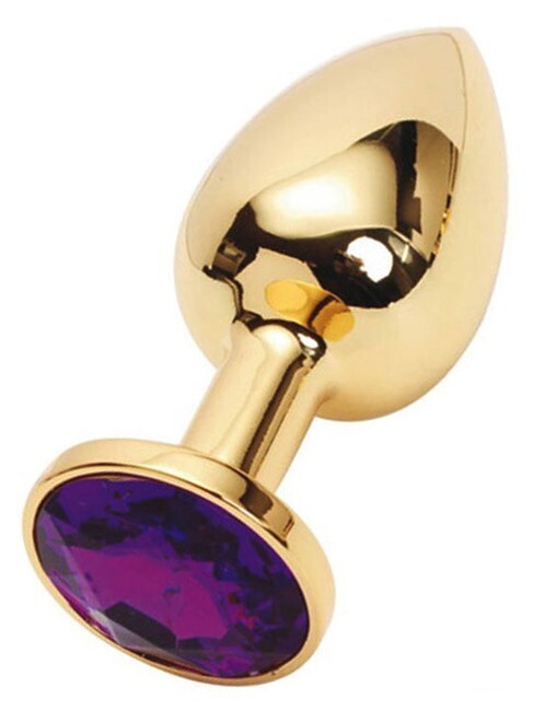 Металлическая пробка с фиолетовым кристаллом, золотой/фиолетовый, длина 7.2см, диаметр 2.8см