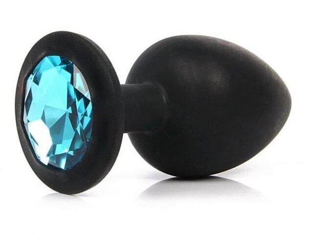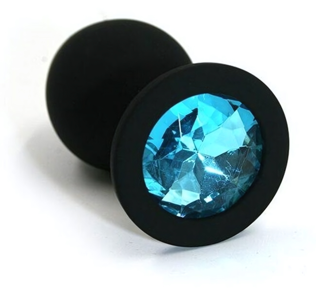 Пробка анальная с кристаллом, коллекция Silicone, черная, длина 6.5см, диаметр 2.7см