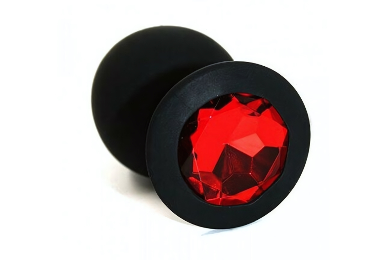 Анальная пробка маленькая "Silicone Collection", черная, с красным кристаллом, длина 6,5см, диаметр 2,7см