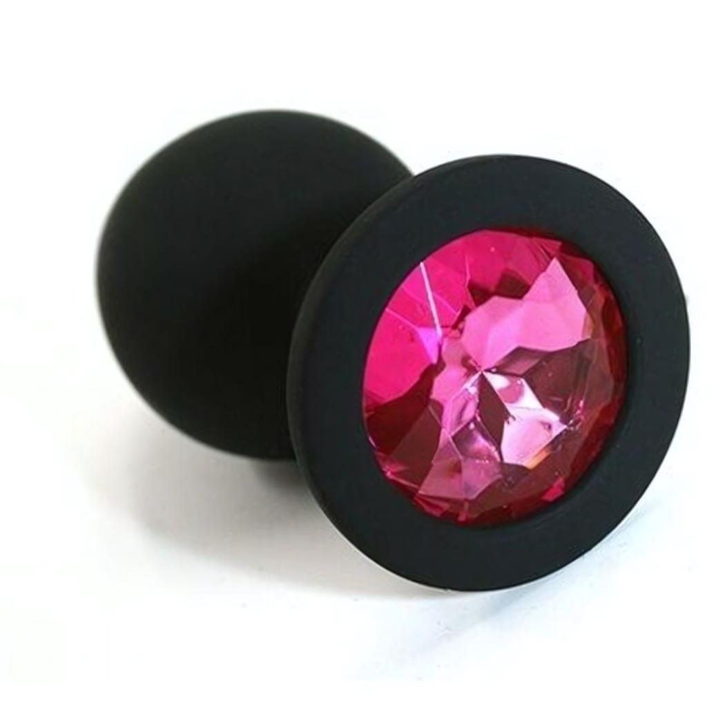 Анальная пробка "Silicone Collection", черная с розовым кристаллом, 6.5см/2.7см, силикон