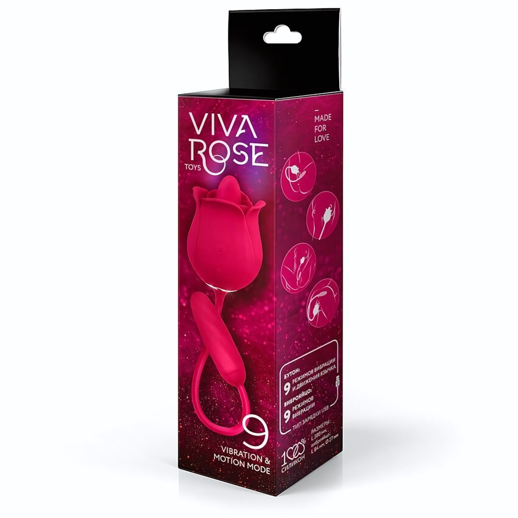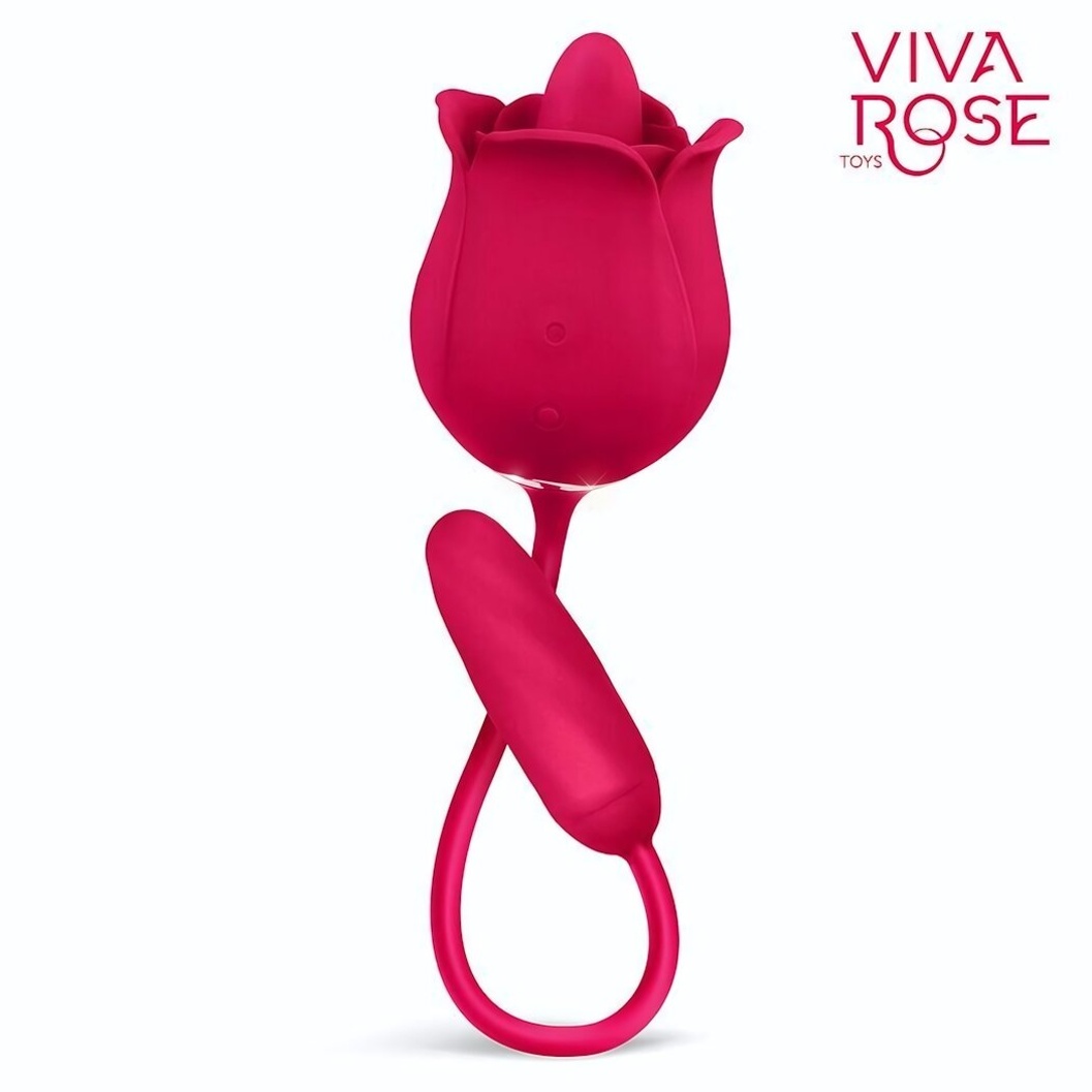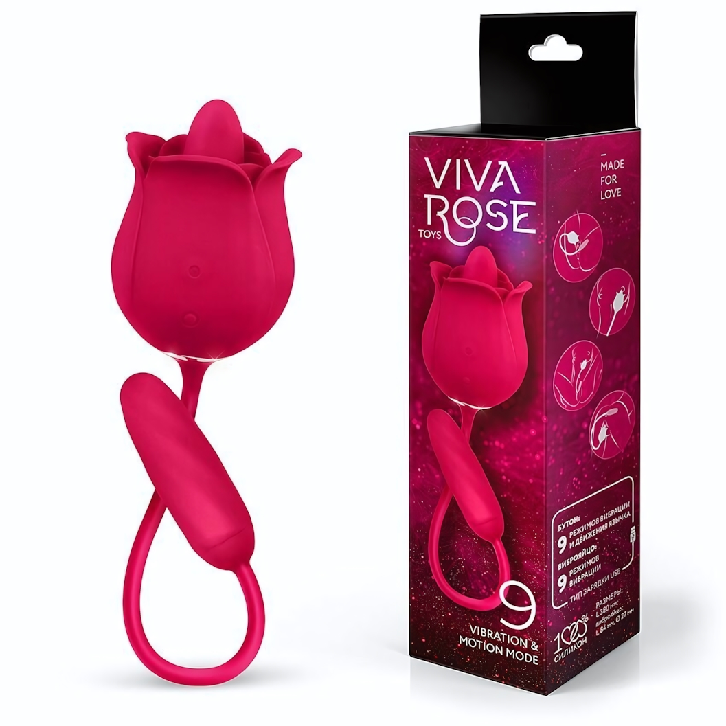 Двойной вибростимулятор «VIVA ROSE» с язычком и виброяйцом, 9 режимов, силикон, малиновый
