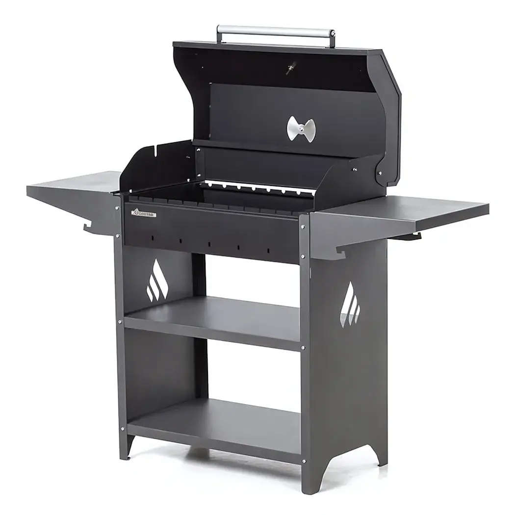 Мангал имеет защиту от ветра, что позволяет готовить даже в неблагоприятных погодных условиях. Его стильный черный цвет с металлической отделкой впишется в любой ландшафт. Размеры мангала составляют 133х44х96 см, что делает его идеальным для семейных встреч и дружеских посиделок на природе.
