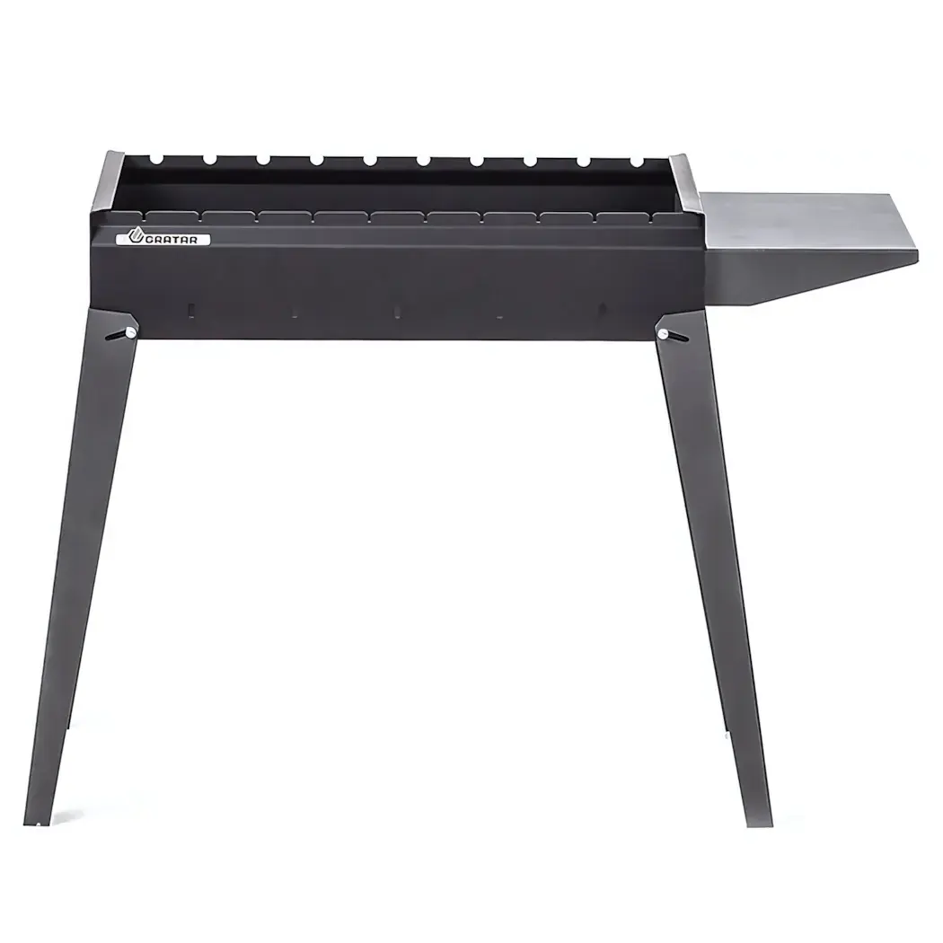 Мангал оснащен складными ножками, что обеспечивает стабильность и удобство в использовании. С одной стороны находится полка, на которой можно разместить продукты и инструменты, что значительно упрощает процесс приготовления. Благодаря вентиляционным отверстиям, жарка становится более эффективной, а ваши блюда получаются равномерно приготовленными.