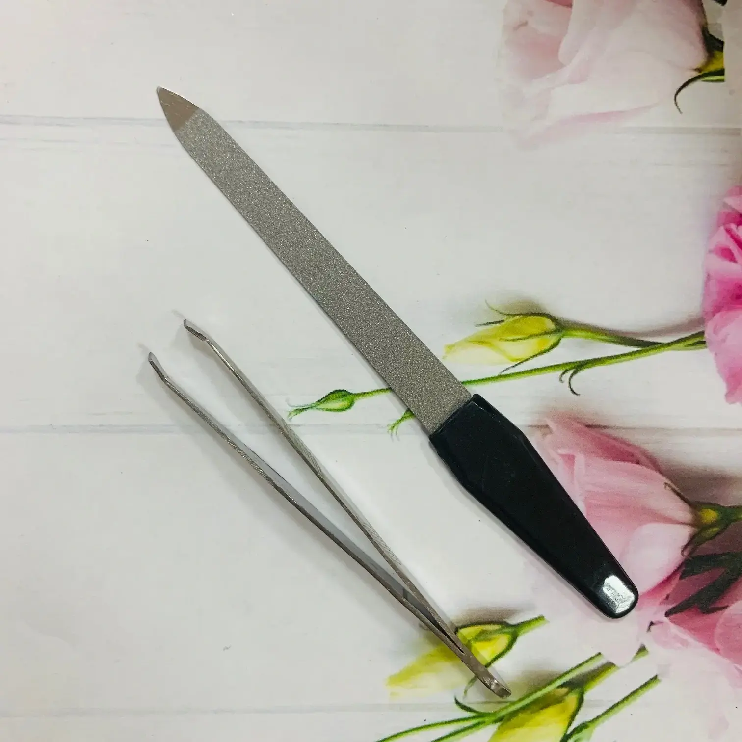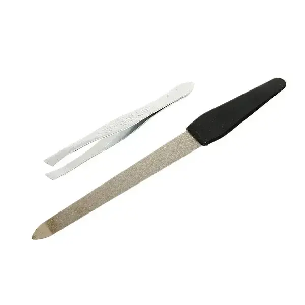 Пилка имеет прямую форму с закругленным концом, что делает ее безопасной в использовании. Пинцет выполнен из металла и имеет блестящую поверхность, что придает ему стильный вид. Упаковка набора выполнена из прозрачного пластика, что позволяет видеть инструменты и защищает их от повреждений. Размеры инструментов стандартные, что делает их удобными для работы.