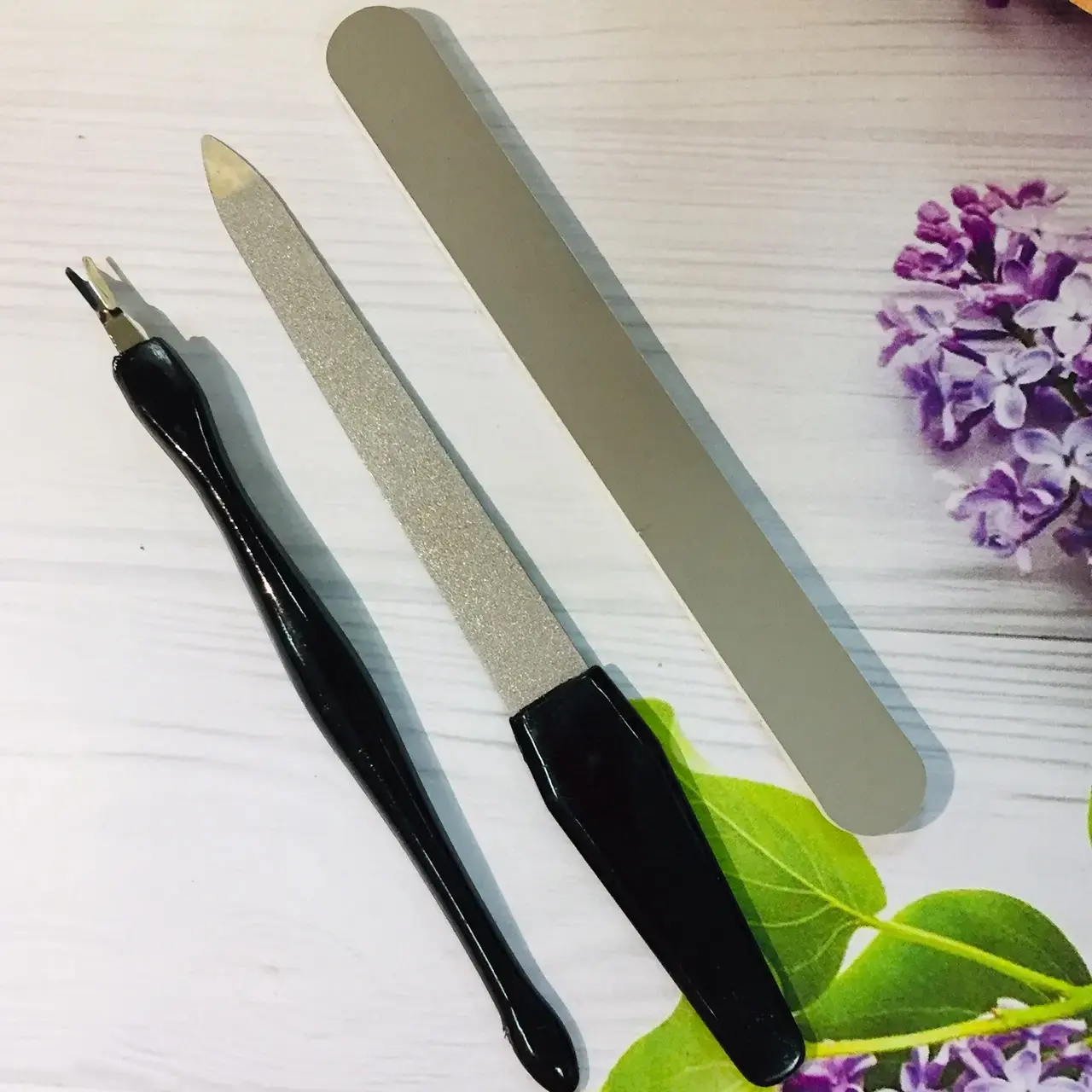 - Металлическая пилка с гладкой и шершавой поверхностями для обработки ногтей.