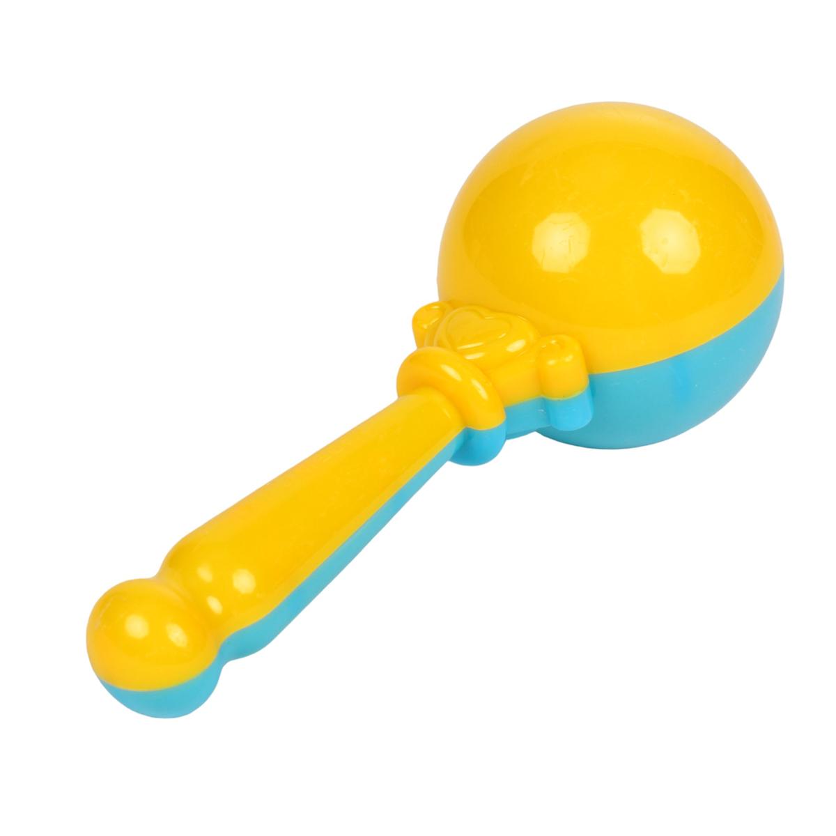 Размеры маракаса составляют 5,5 см в диаметре и 14 см в длину, что делает его удобным для маленьких детей. Он выполнен из прочного и безопасного пластика, что гарантирует долговечность и надежность в использовании. Яркие цвета — синий и желтый — привлекают внимание и делают игру более увлекательной.