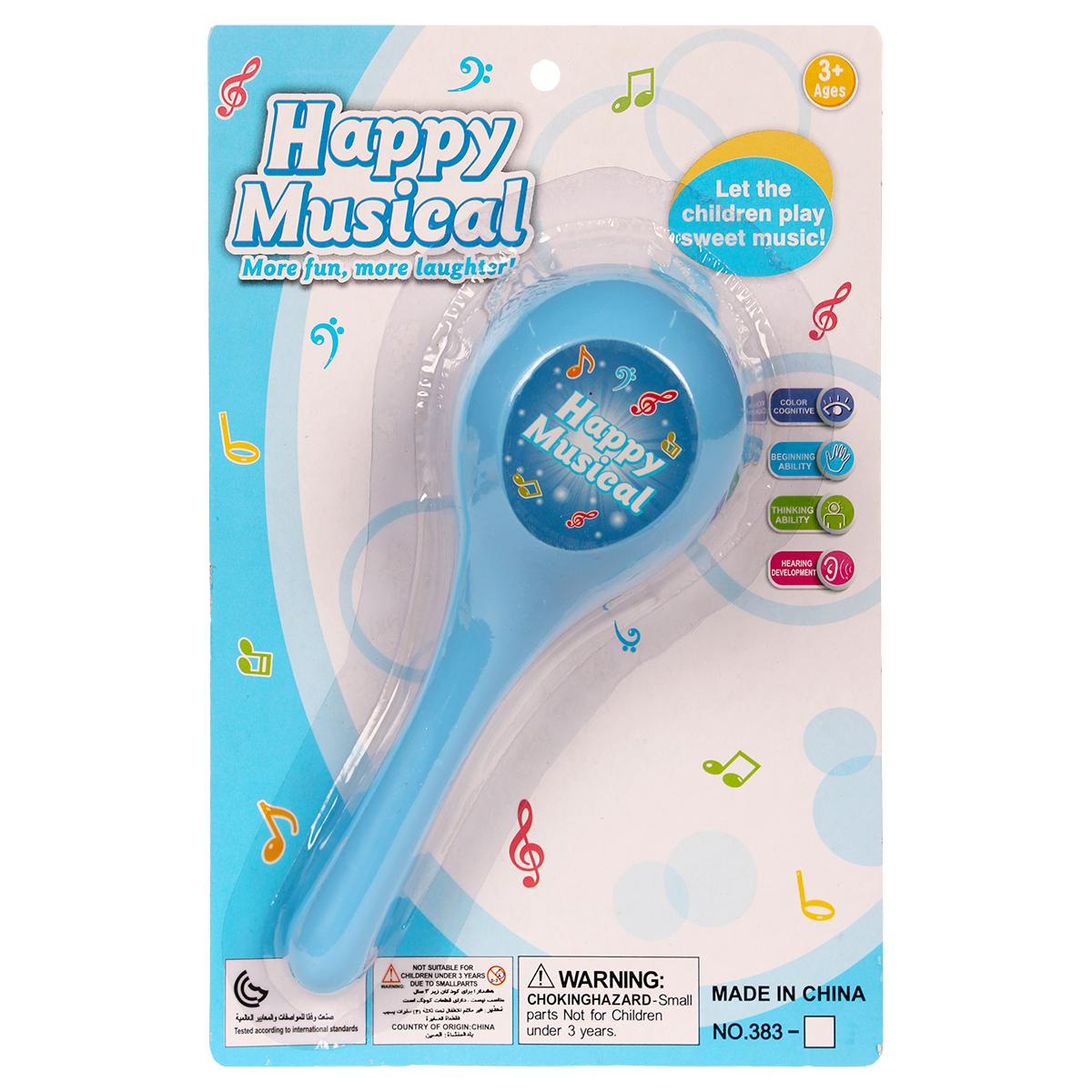 Этот яркий музыкальный инструмент в виде маракаса создаст атмосферу веселья и радости для детей и взрослых. Благодаря компактным размерам 21х14х4,5 см, его удобно держать в руках, а яркий дизайн с изображениями нот и надписью "Happy Musical" сделает его привлекательным для малышей и начинающих музыкантов.