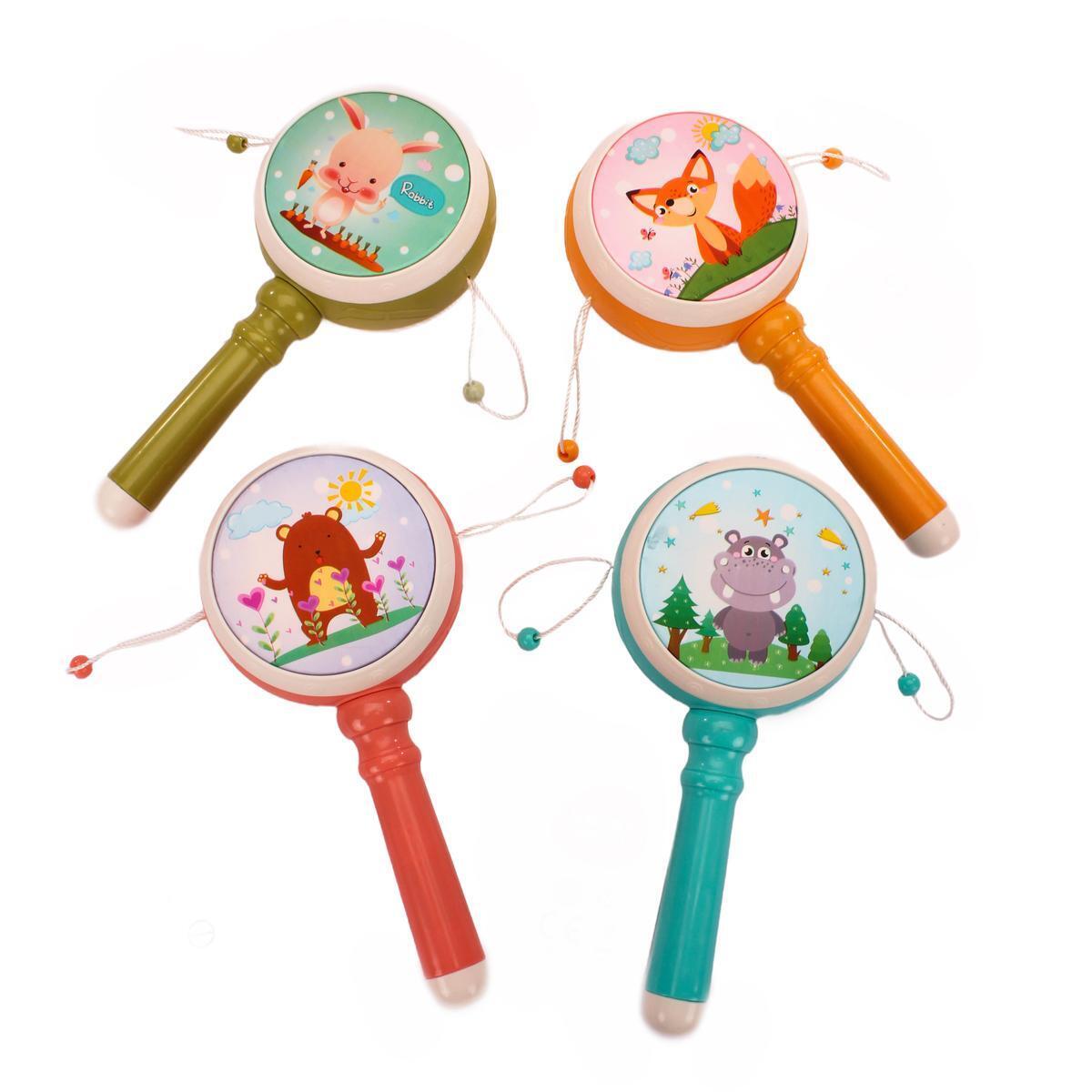 Маракас детский "Зверята", музыкальная игрушка с кнопкой, пластик, 20x18 см, 4 цвета