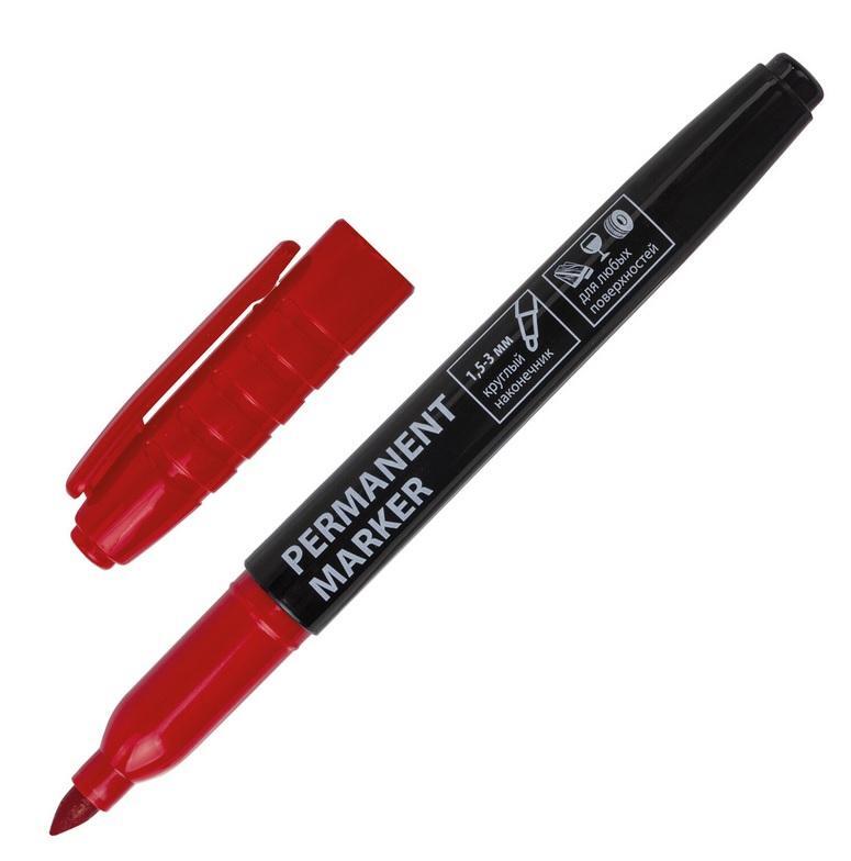 Маркер перманентный красный, толщина 1,5-3 мм, для любых поверхностей