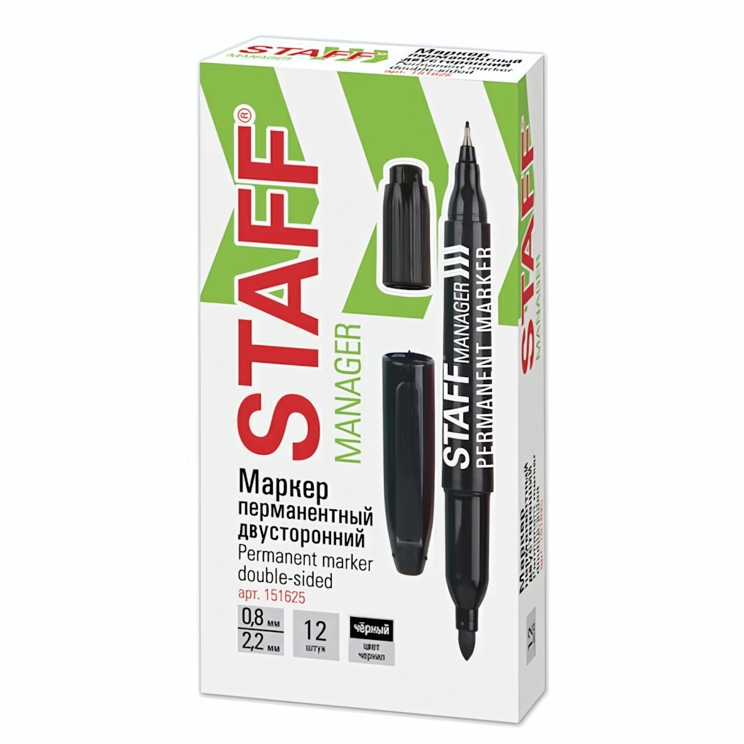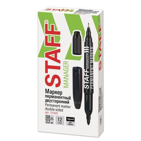 Маркер перманентный двусторонний staff manager, черный, двойные наконечники 0,8 мм / 2,2 мм, 1 штука