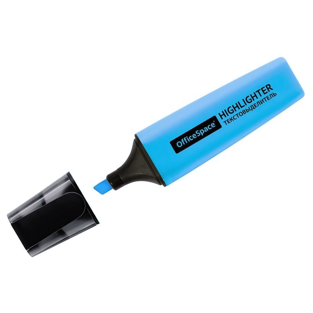 Текстовыделитель «OfficeSpace» голубой, широкая насадка 1-5 мм, пластиковый корпус, удобный клип