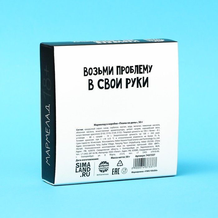 Погрузитесь в мир сладостей с мармеладом в коробке 'Планы на день'. Этот уникальный сувенир не только порадует вас яркими цветами, но и станет отличным подарком для друзей и близких. Смешение вкусов и форм делает его идеальным для создания веселой атмосферы на любом празднике или вечеринке.