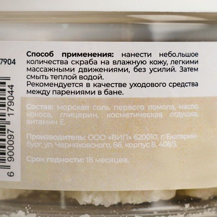 Скраб представлен в удобной упаковке объемом 200 гр. Он имеет густую текстуру с мелкими частицами соли, которые эффективно очищают кожу. Упаковка выполнена в светлых тонах, что делает её стильной и привлекательной. Не упустите возможность побаловать себя и свою кожу с помощью этого замечательного средства!