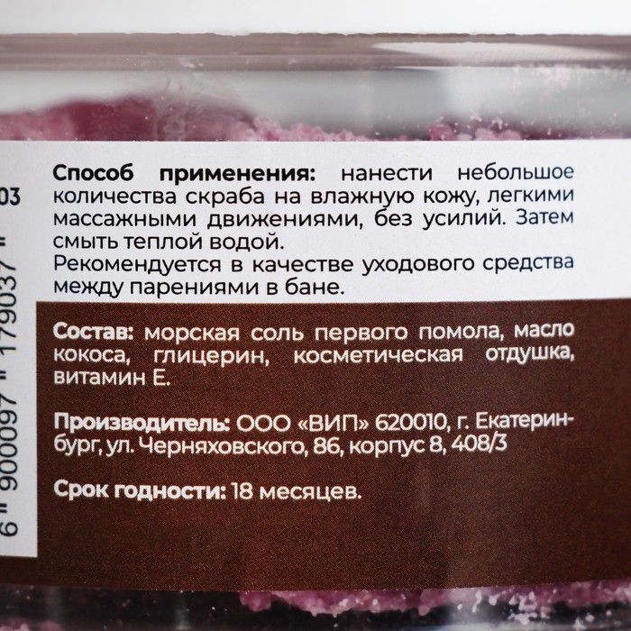 Объём упаковки составляет 200 гр, что делает его удобным для использования и хранения. Упаковка имеет круглую форму с белой крышкой и прозрачный цвет, что позволяет видеть текстуру скраба. Не упустите возможность побаловать себя и свою кожу с помощью этого замечательного продукта!