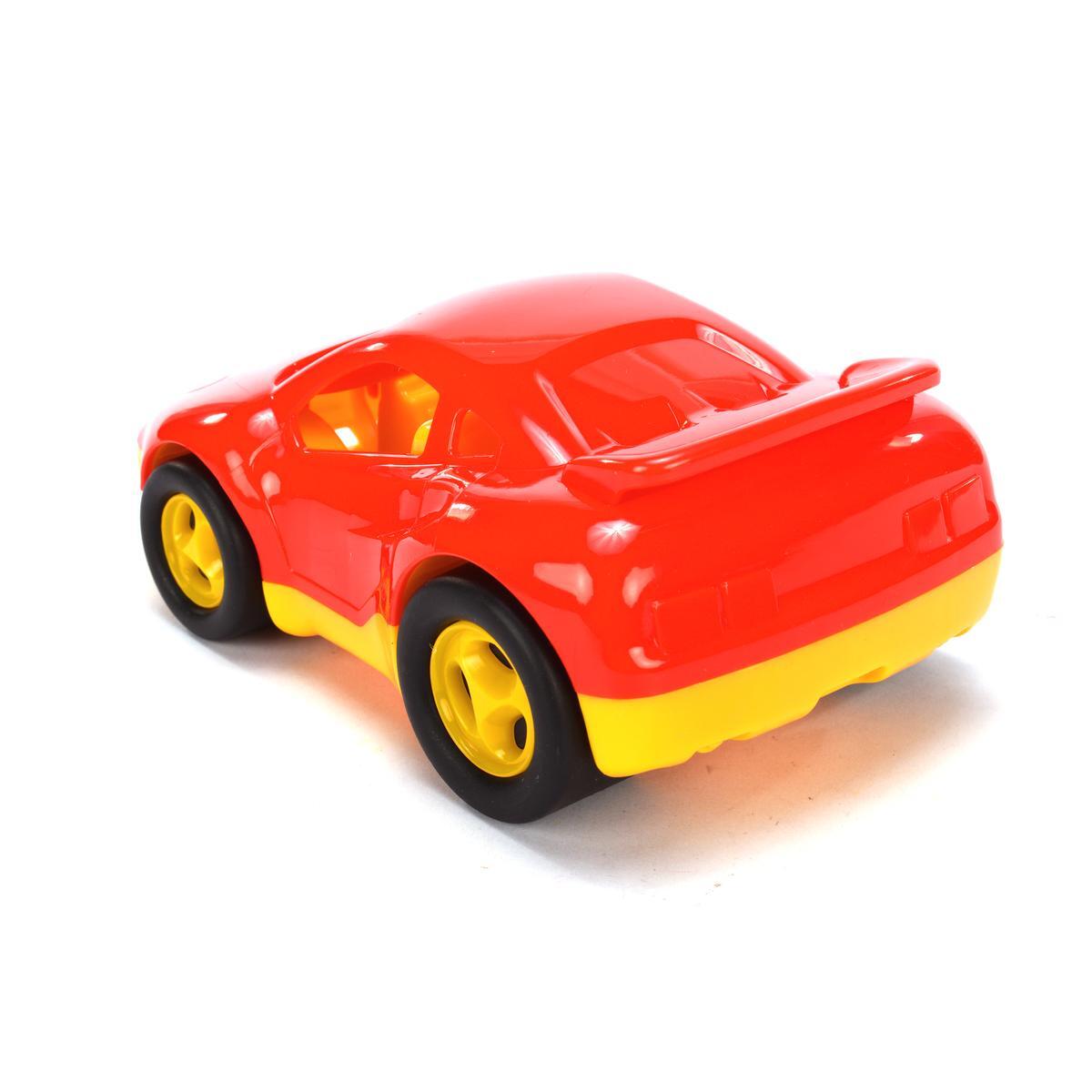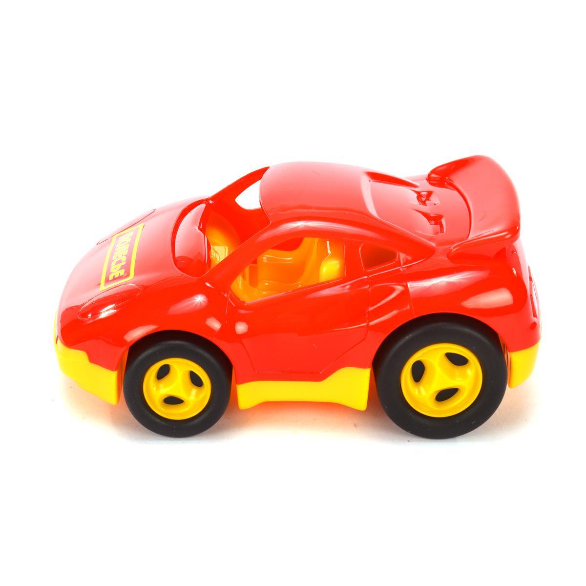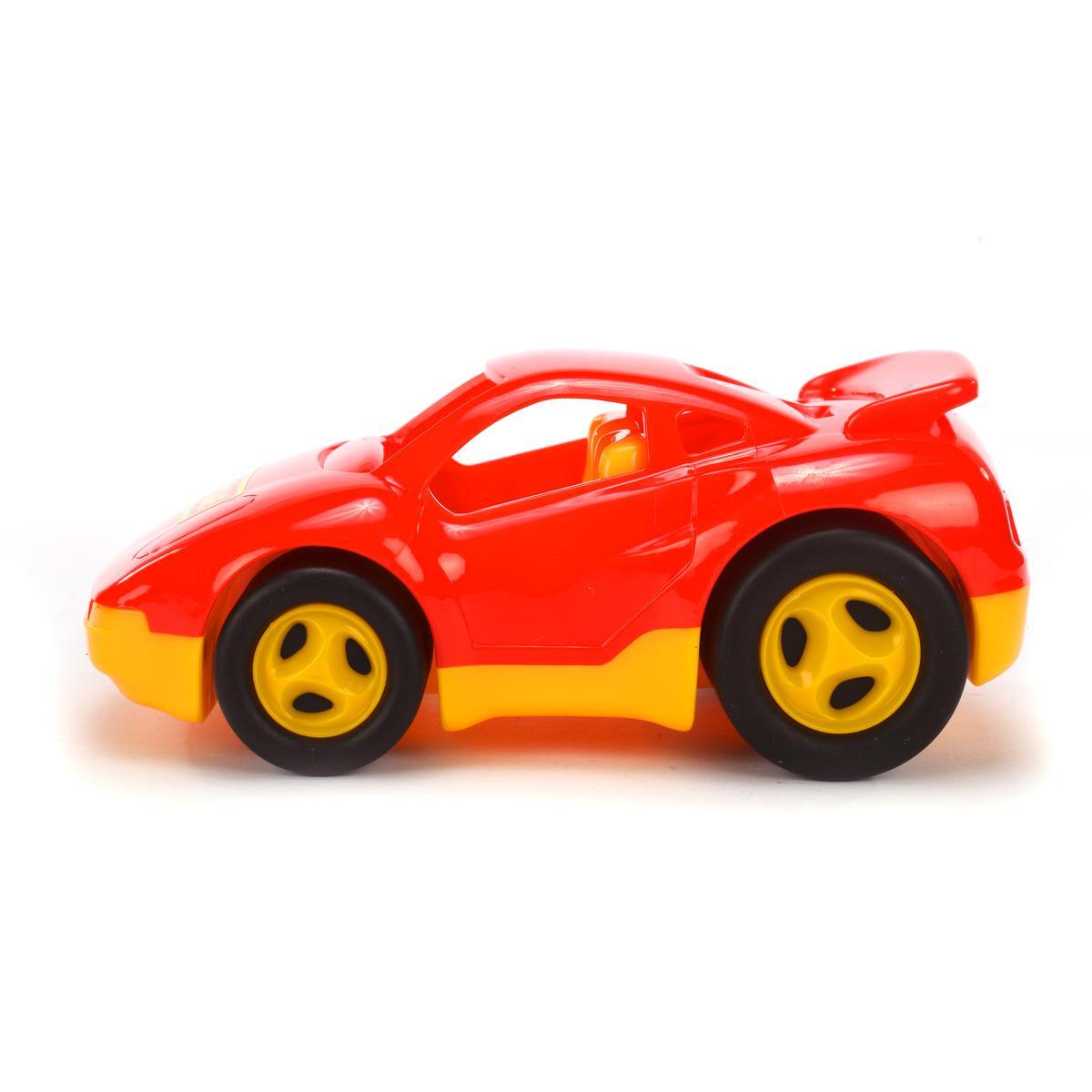 Эта яркая гоночная модель выполнена из качественного пластика, обладает длиной около 13 см и идеально подходит для малышей, увлеченных скоростью и движением. Благодаря реалистичному дизайну и яркому цвету — красному с желтыми деталями — она привлекает внимание и вызывает интерес у детей, побуждая к активным играм и развитию фантазии.