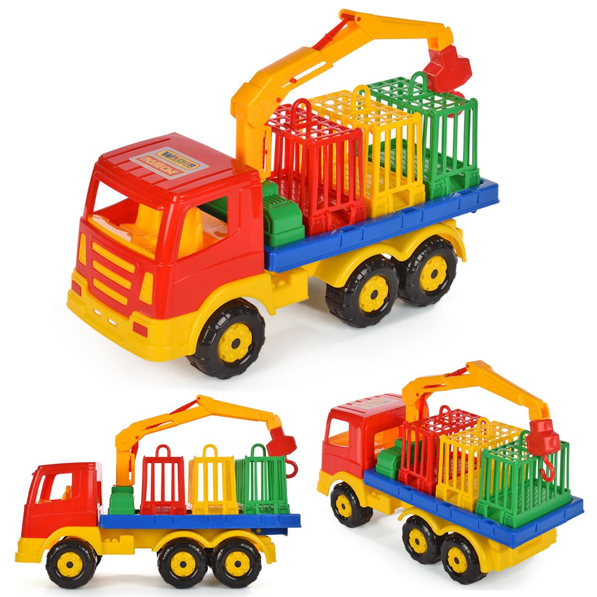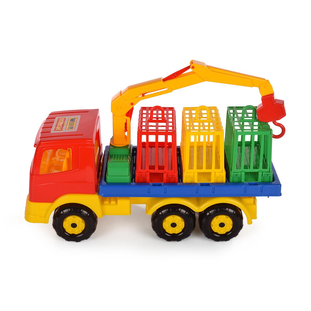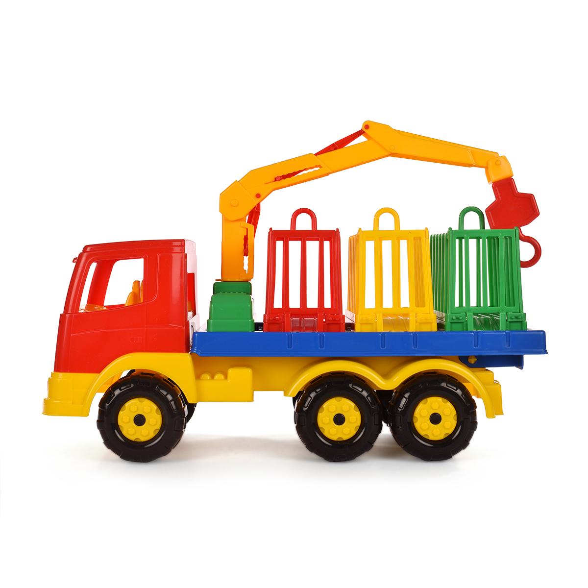Игрушка подходит для детей от 3 лет и отлично подходит как для игр в помещении, так и на улице. В комплект входит подвижный грузовик с краном, открывающимися дверцами и разноцветными контейнерами. Кран можно использовать для подъема и опускания грузов, что дает ребёнку почувствовать себя настоящим водителем и грузовым машинистом.