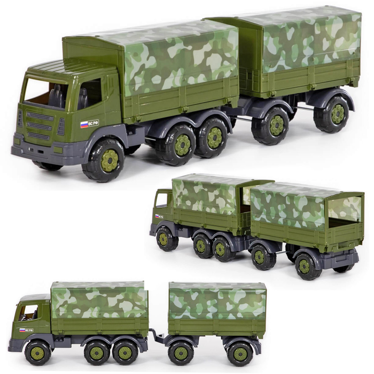 Грузовик военный с прицепом «Престиж», камуфляж, пластик, съемный тент, 71х16,5х22,5см