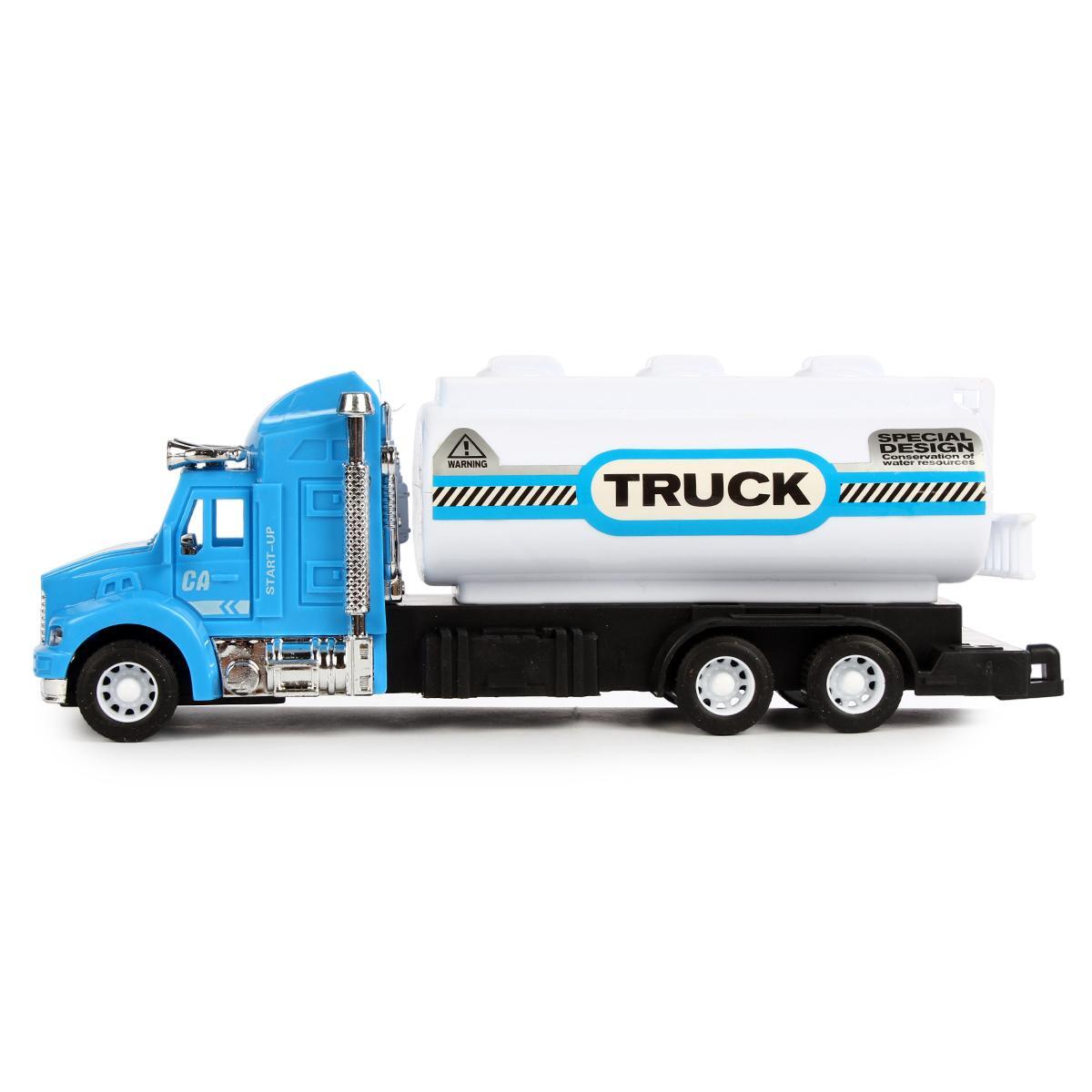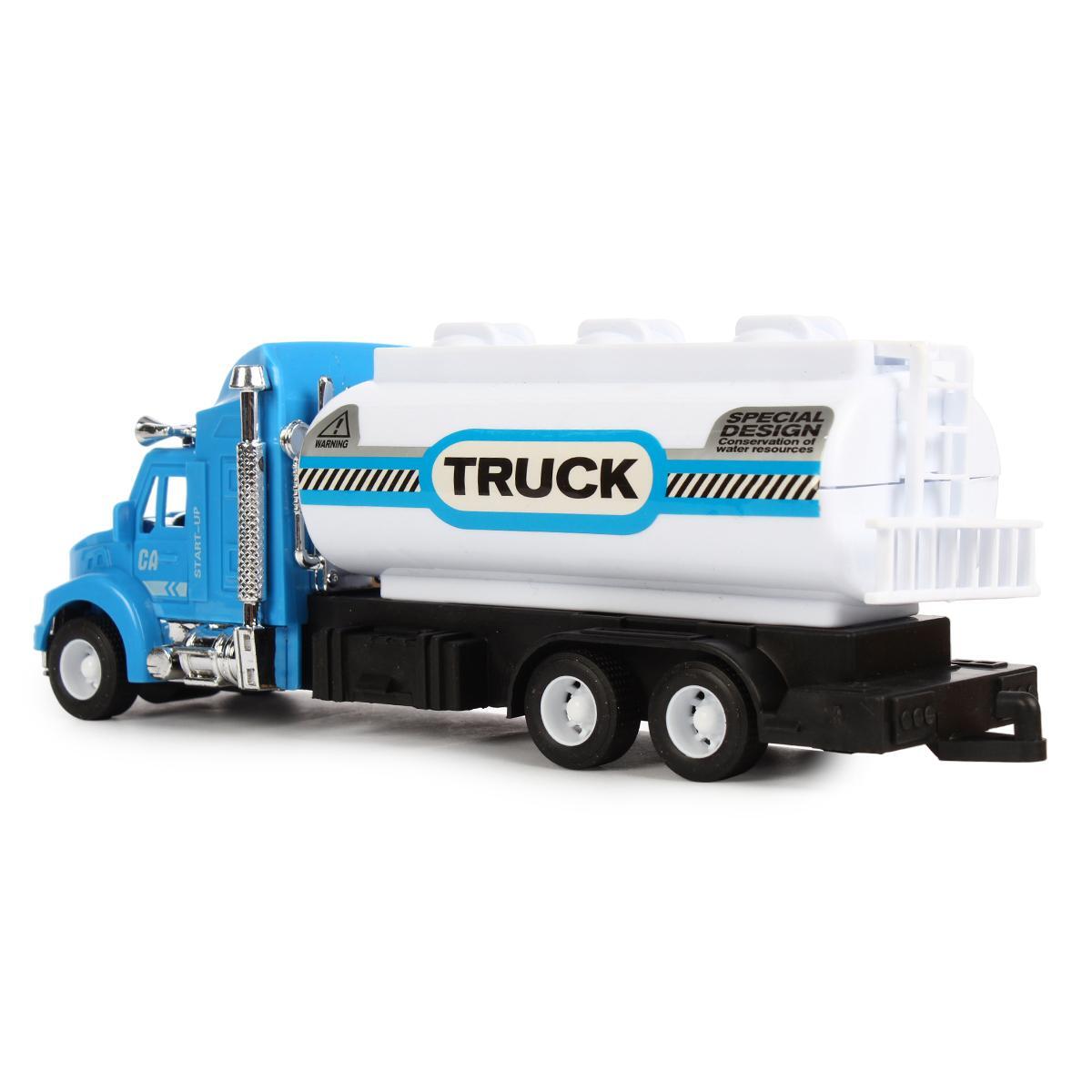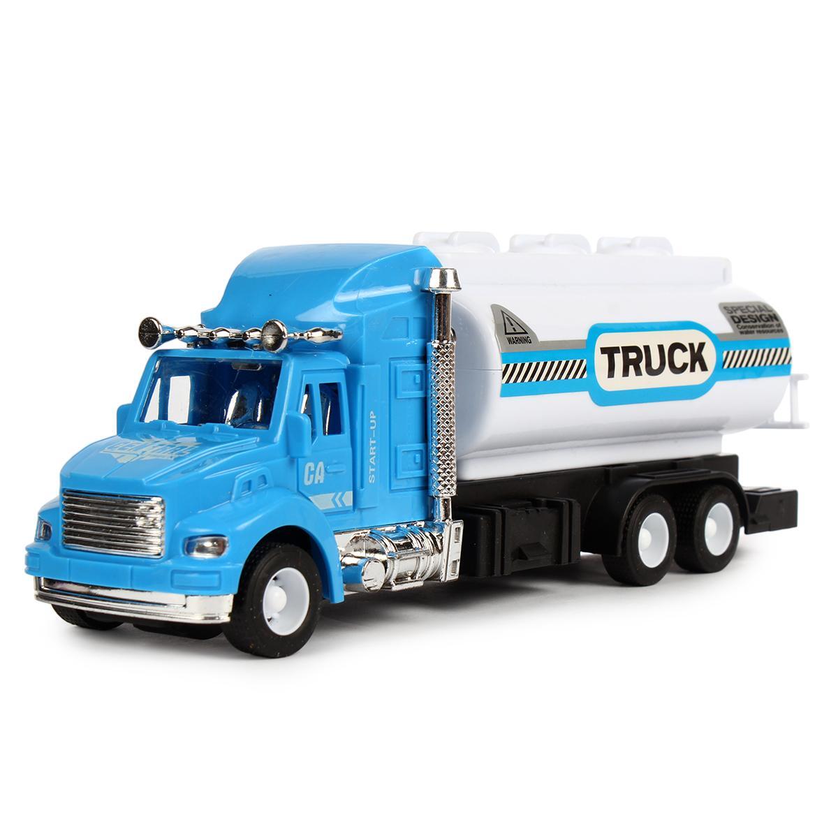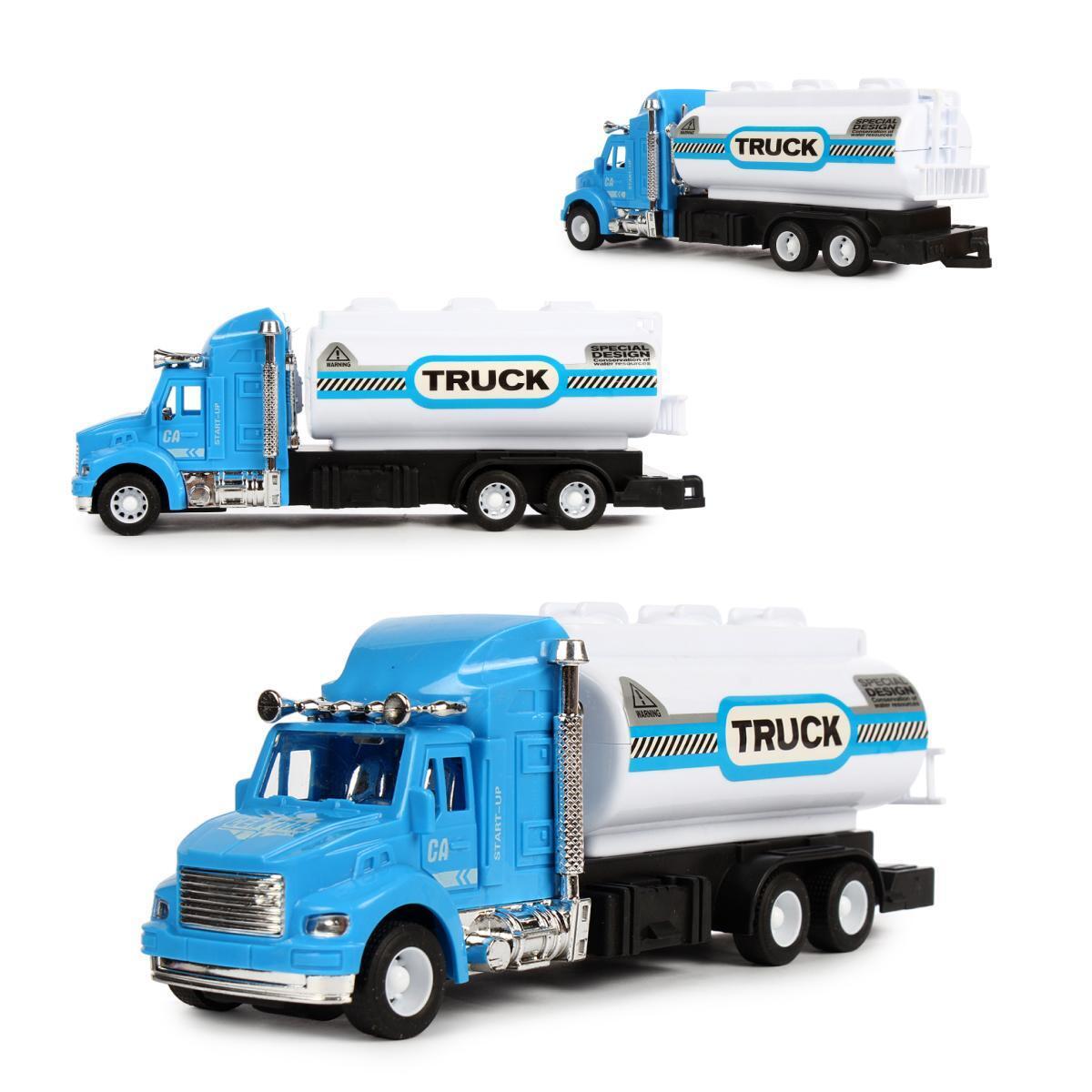 Модель имеет открывающуюся крышку цистерны и детализированную кабину с лобовым стеклом. Хромированные фары, решетка радиатора и выхлопная труба добавляют реалистичности. Компактный размер (примерно 20-25 см в длину) удобен для детских рук и хранения.