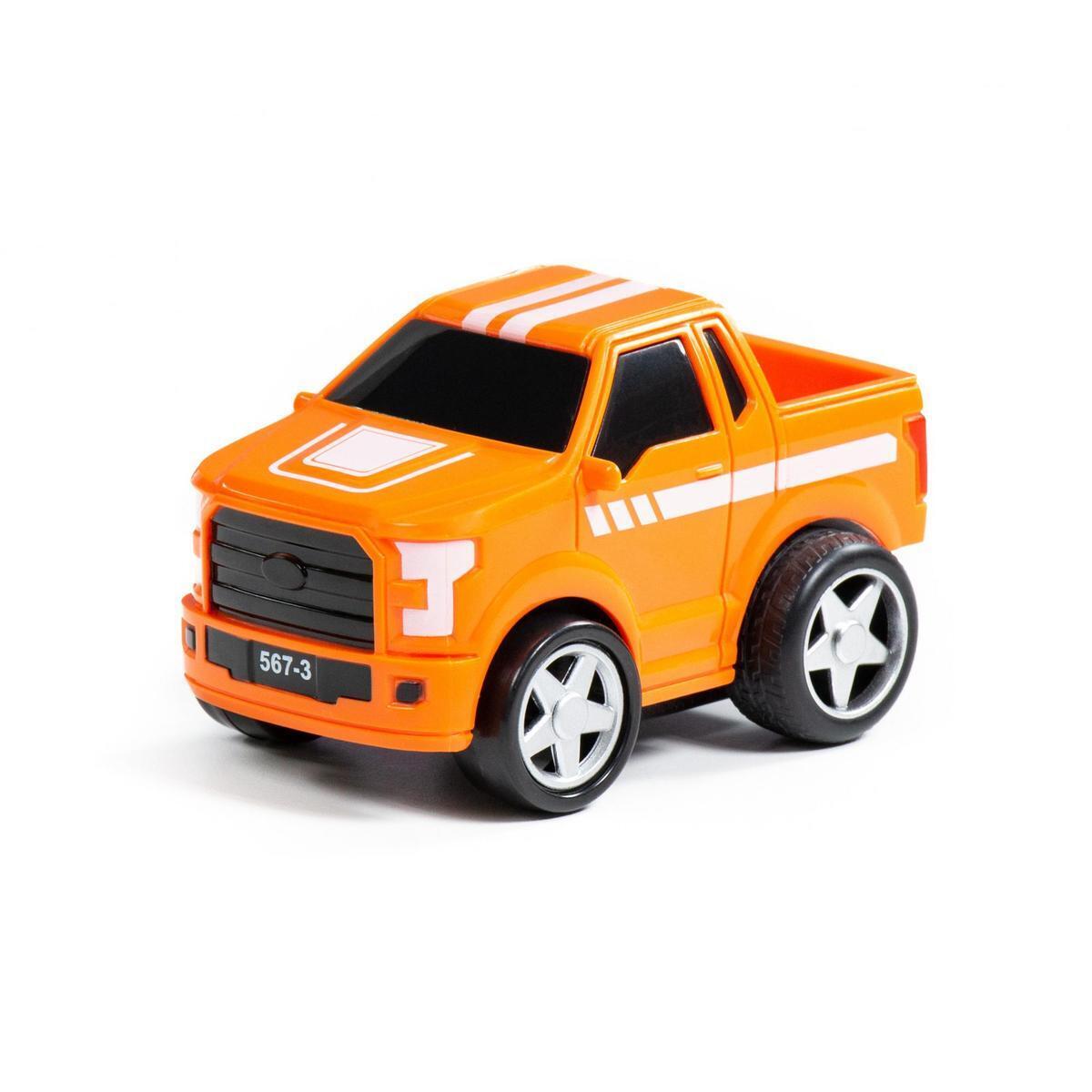 Инерционная машинка «Крутой Вираж» №2, пикап, оранжевый с белыми полосами, вращение 360°