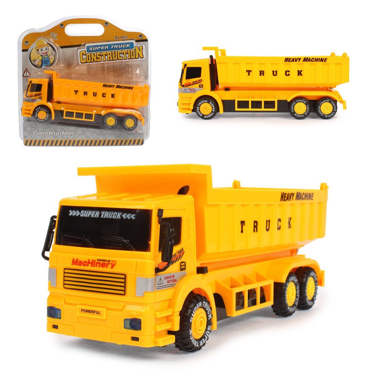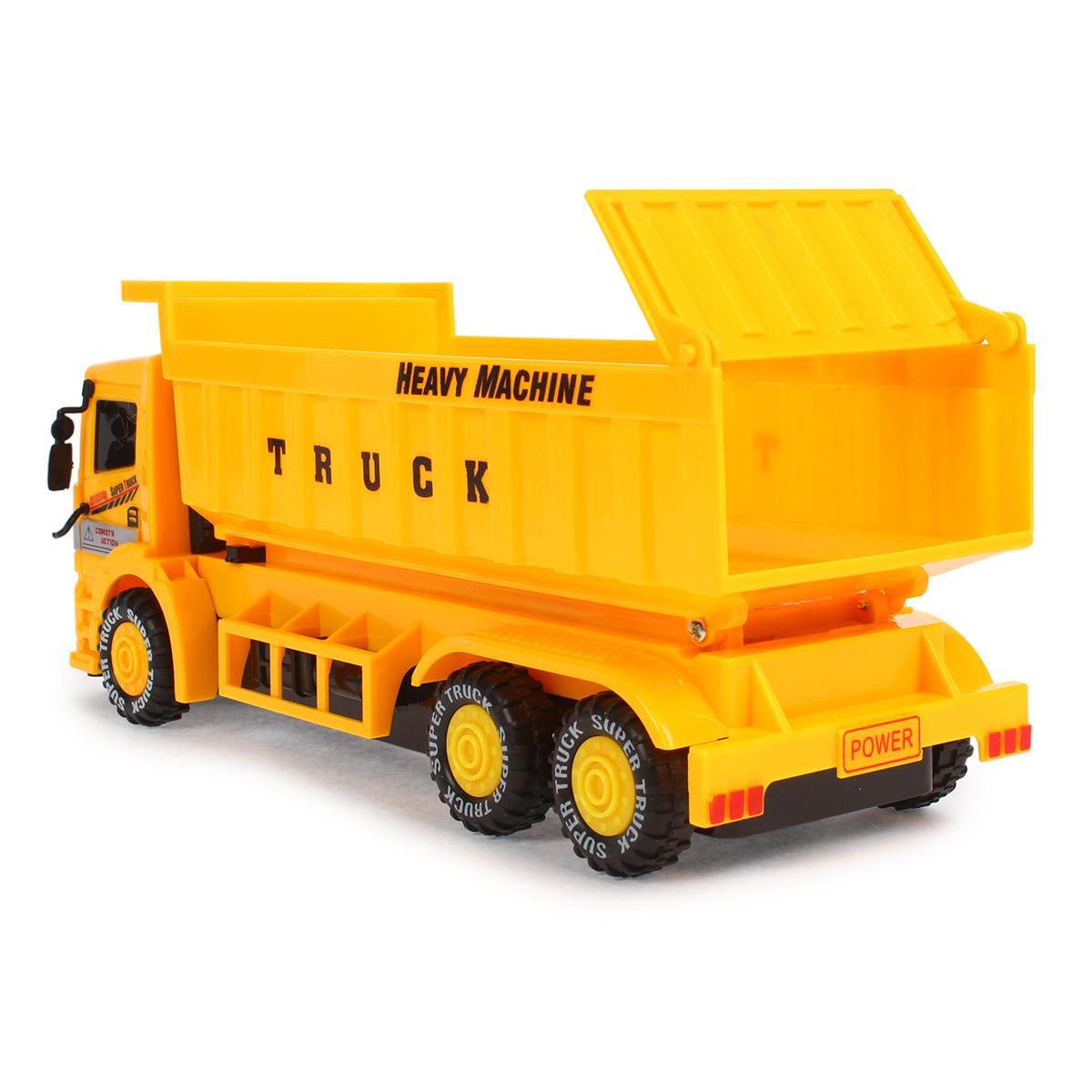 Инерционный самосвал с подъемным кузовом создан для активных игр и развития координации. Реалистичный дизайн с надписью «HEAVY MACHINE» и массивными колесами пробуждает интерес к ролевым играм в строительной тематике.