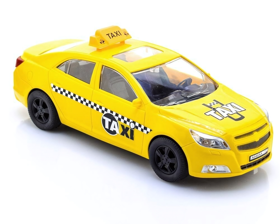 - Четкие контуры и аутентичные детали: световая табличка «TAXI», номерной знак, черно-белые полосы