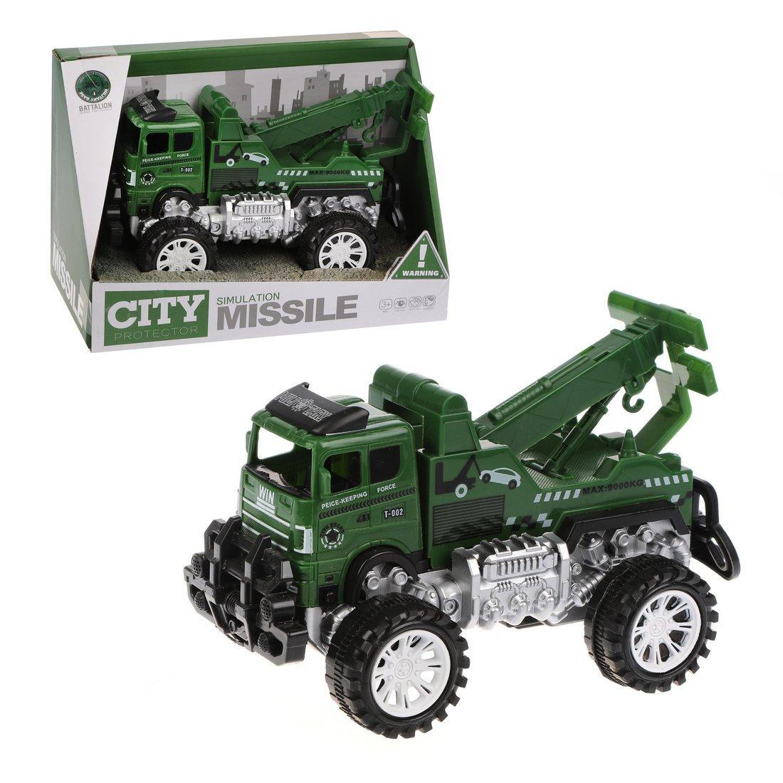 Грузовик военный 'City Protector' T-002, зеленый/серебристый, пластик, фрикционный механизм
