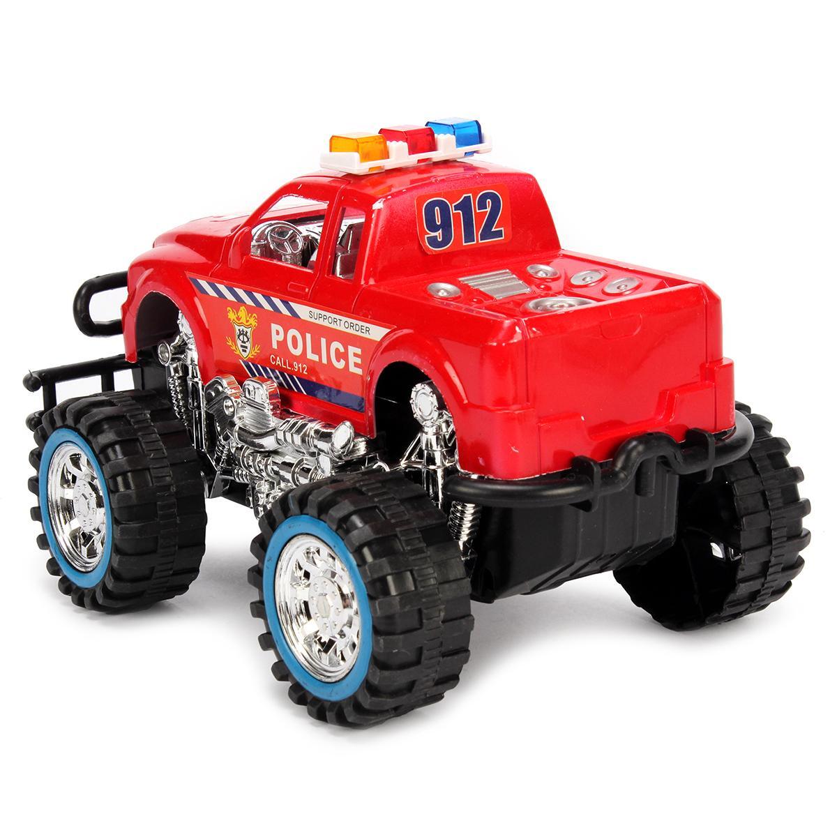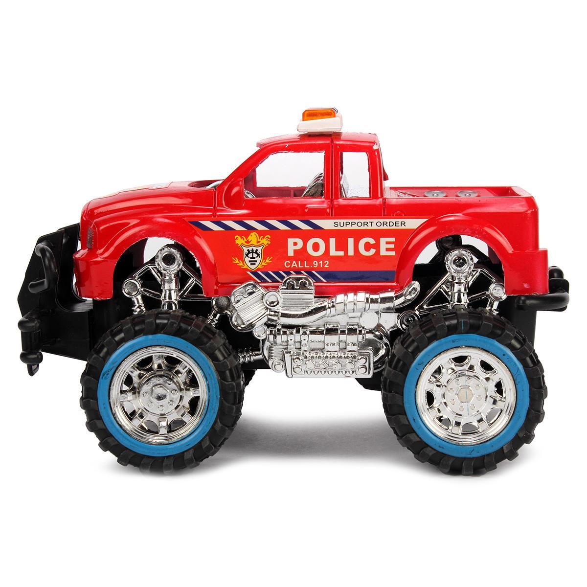 Большие колеса с выраженным протектором обеспечивают плавное движение. Детализированная конструкция кузова, световые элементы на крыше и реалистичные наклейки создают атмосферу настоящего полицейского патруля.