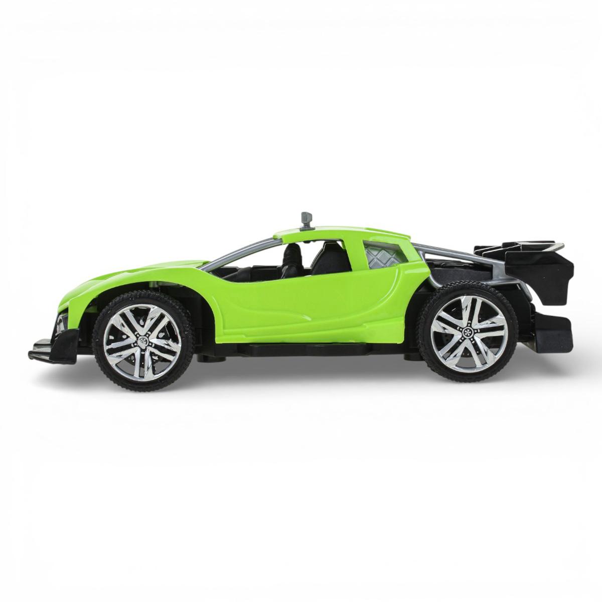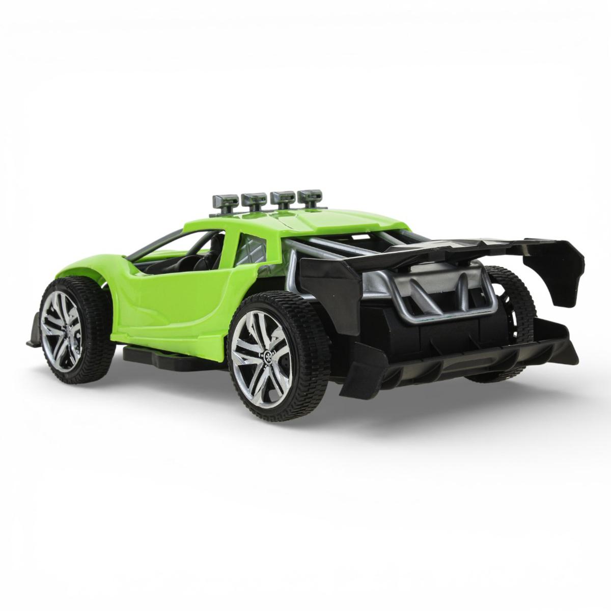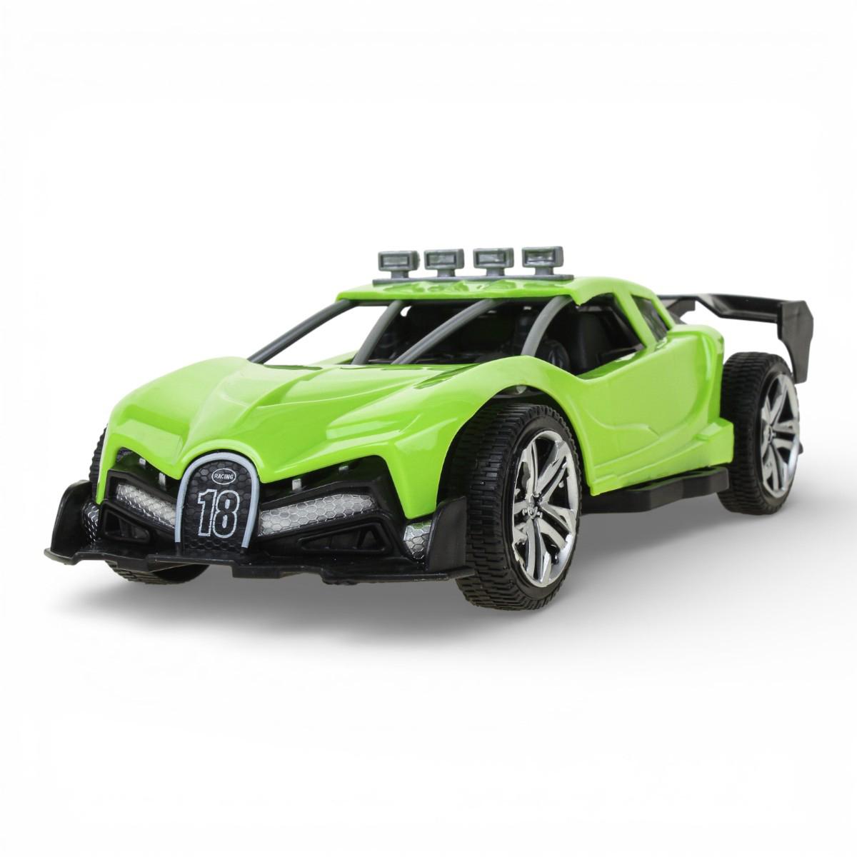 Модель выполнена в спортивном стиле с выразительными элементами: массивный бампер, спойлер, декоративные прожекторы на крыше и проработанные колеса с протектором. Машинка отлично подходит для домашних гонок, игр на полу, ковре или детской площадке. Ребенок может устраивать соревнования, придумывать трассы и разыгрывать собственные сценарии.