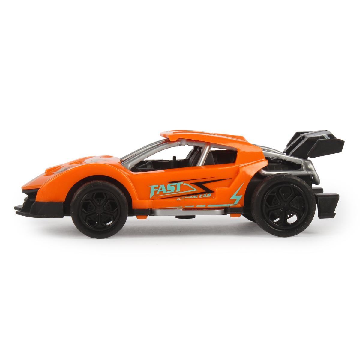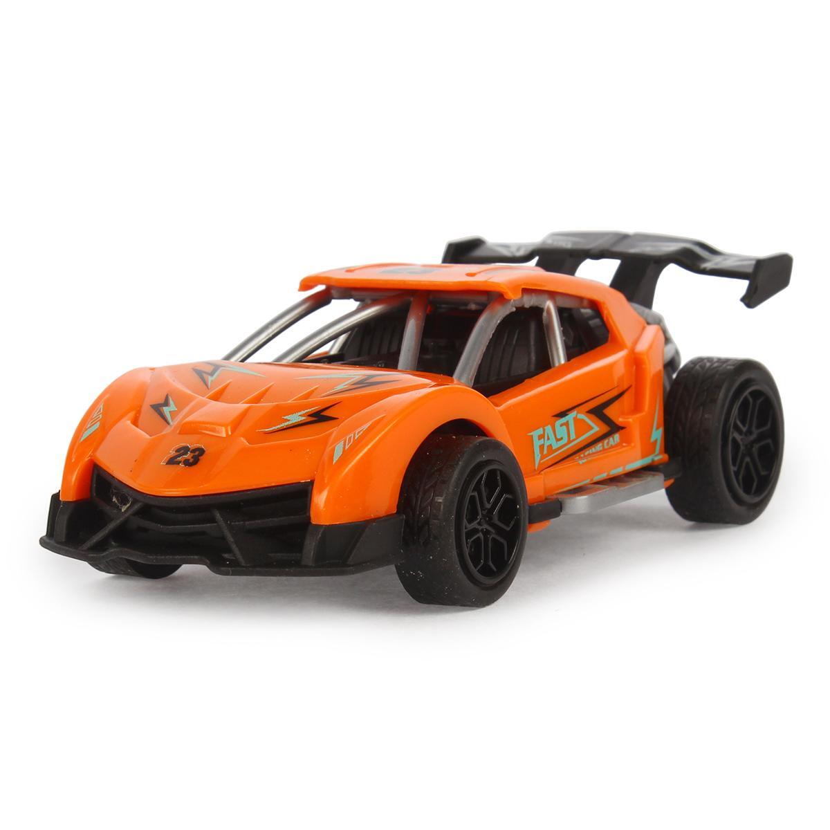 Модель выполнена в ярком оранжевом цвете с четкими декоративными элементами, такими как номера и надписи, создающими ощущение скорости. Размер автомобиля — 11 см, он легко помещается в ручку ребенка и занимает минимум места для хранения. Идеальный выбор для активных игр, соревнований и коллекционирования. Дополнительные преимущества включают легкость в использовании и устойчивость к механическим повреждениям — это сделает игру безопасной и приятной на долгое время.