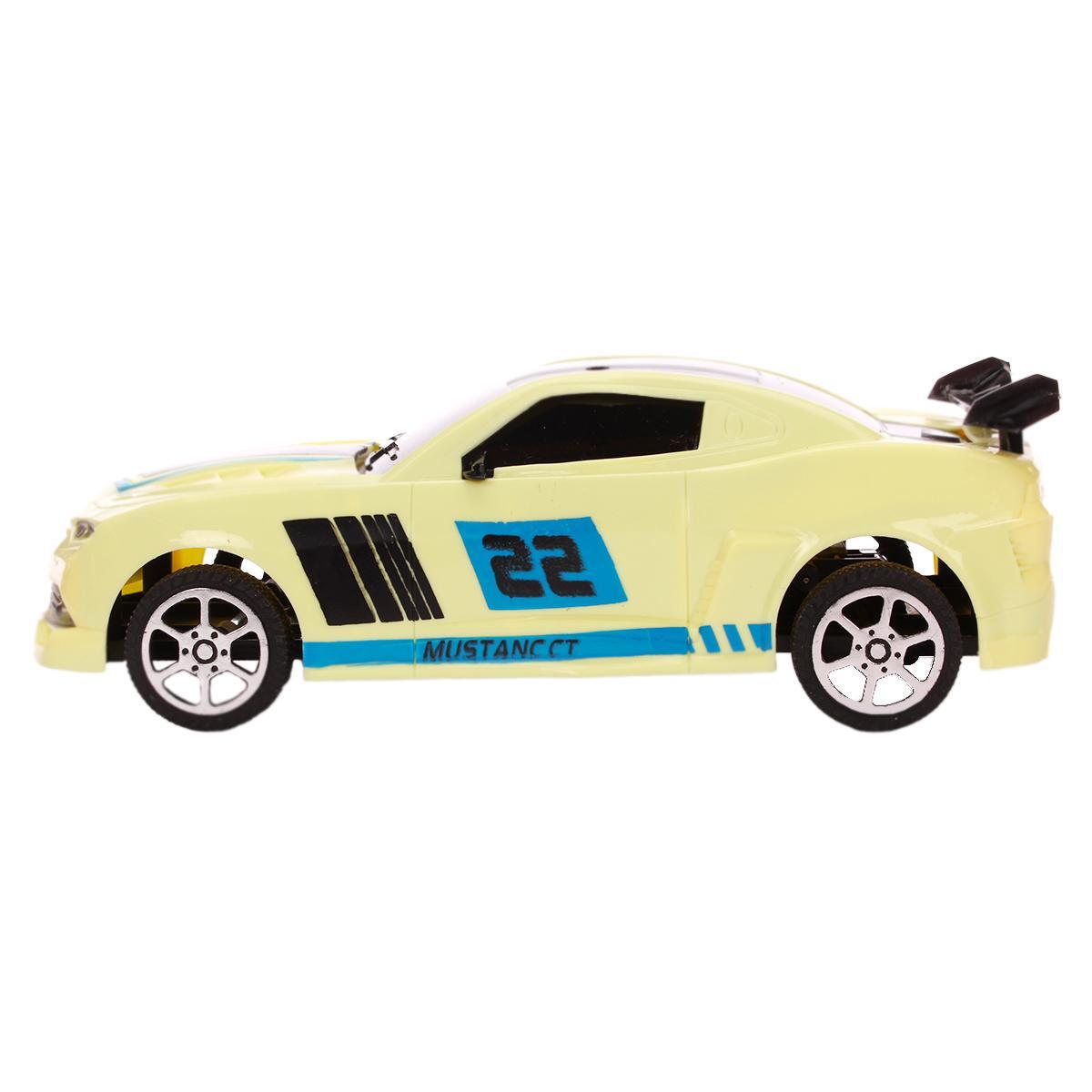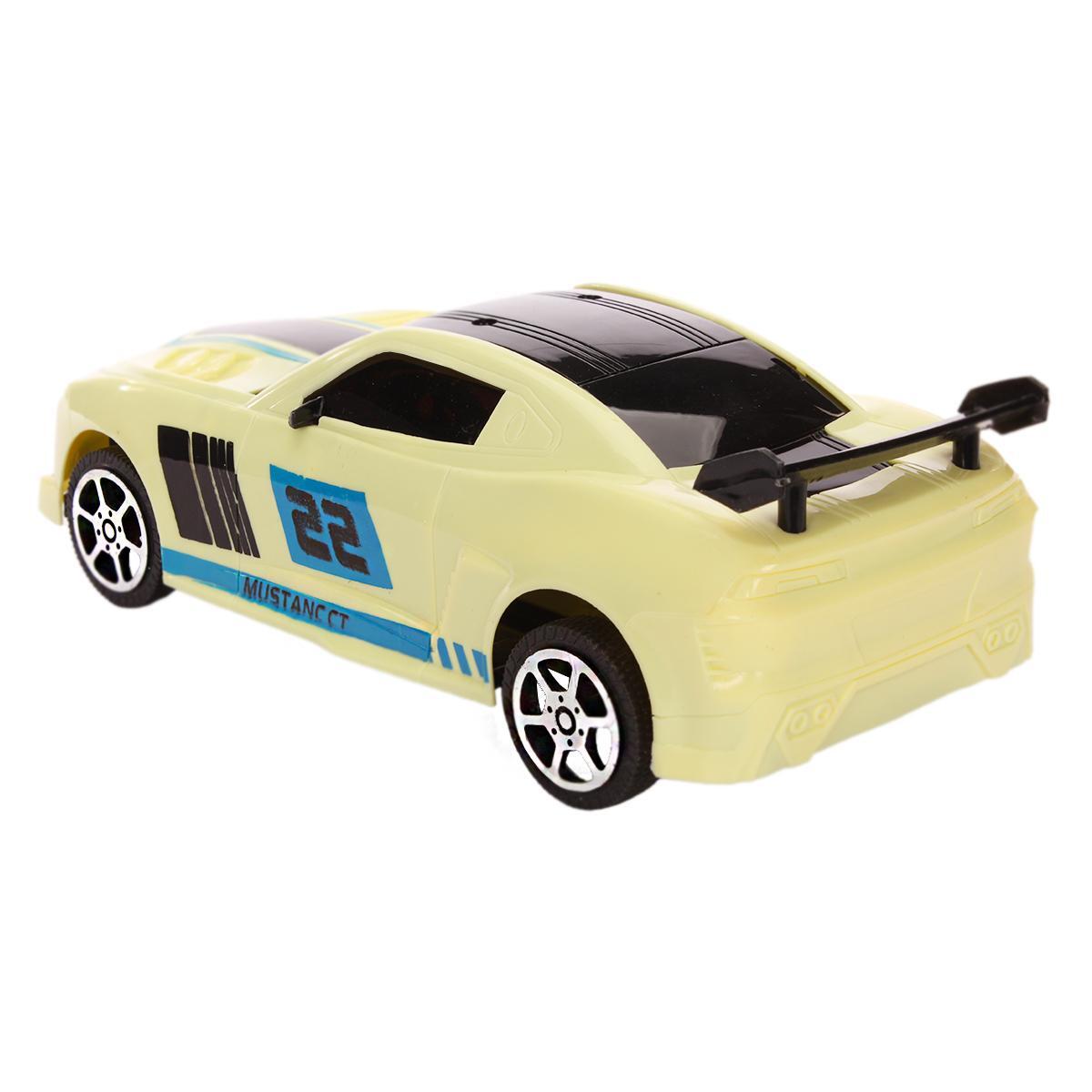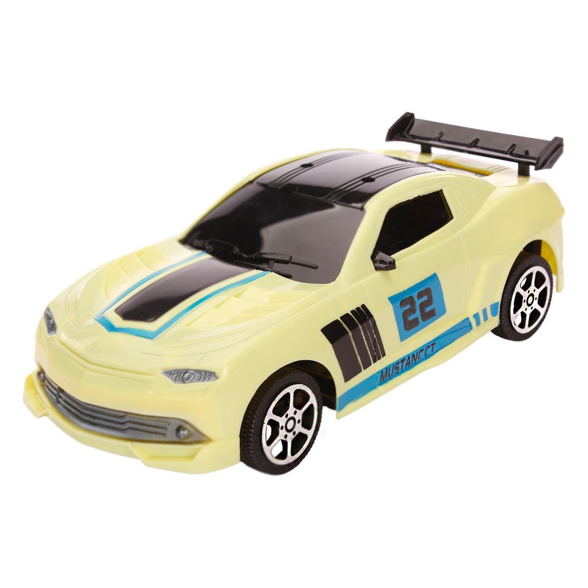 Модель выполнена из прочного пластика, экологически чистого и безопасного материала, устойчивого к механическим повреждениям и длительному использованию. Эффектный дизайн с ярким желтым цветом, черными и голубыми полосами, задним спойлером и светодиодами создаст эффект настоящего спортивного автомобиля и вызовет восторг у мальчиков.