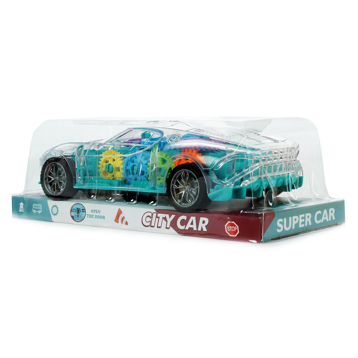Игрушечная машина оснащена инерционным механизмом, что позволяет ей двигаться самостоятельно при небольшом толчке. Она идеально подходит для детей от 3 лет и старше, которые могут использовать её как в помещении, так и на улице. Прозрачный корпус позволяет наблюдать за работой шестеренок, что добавляет элемент обучения в игру.