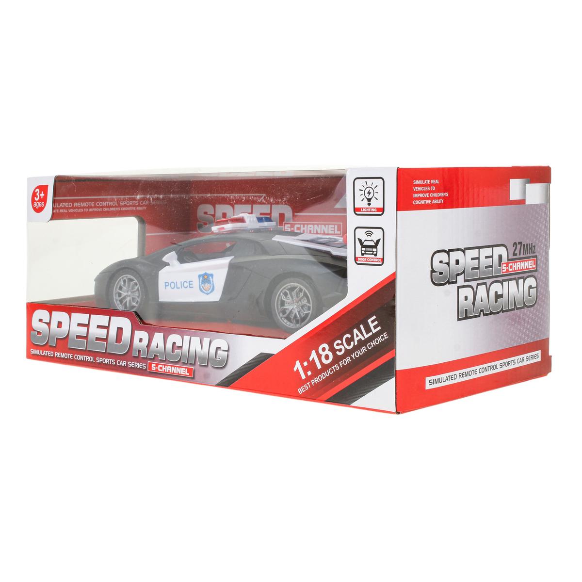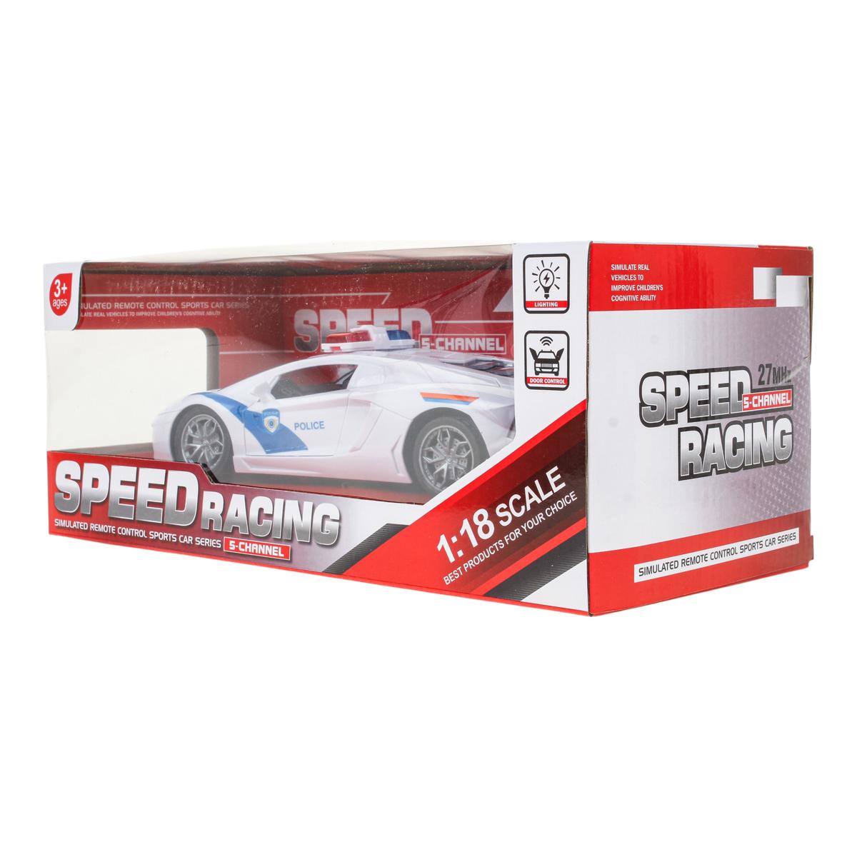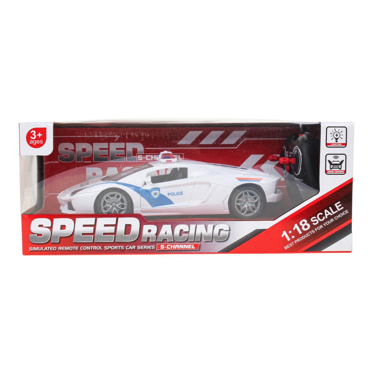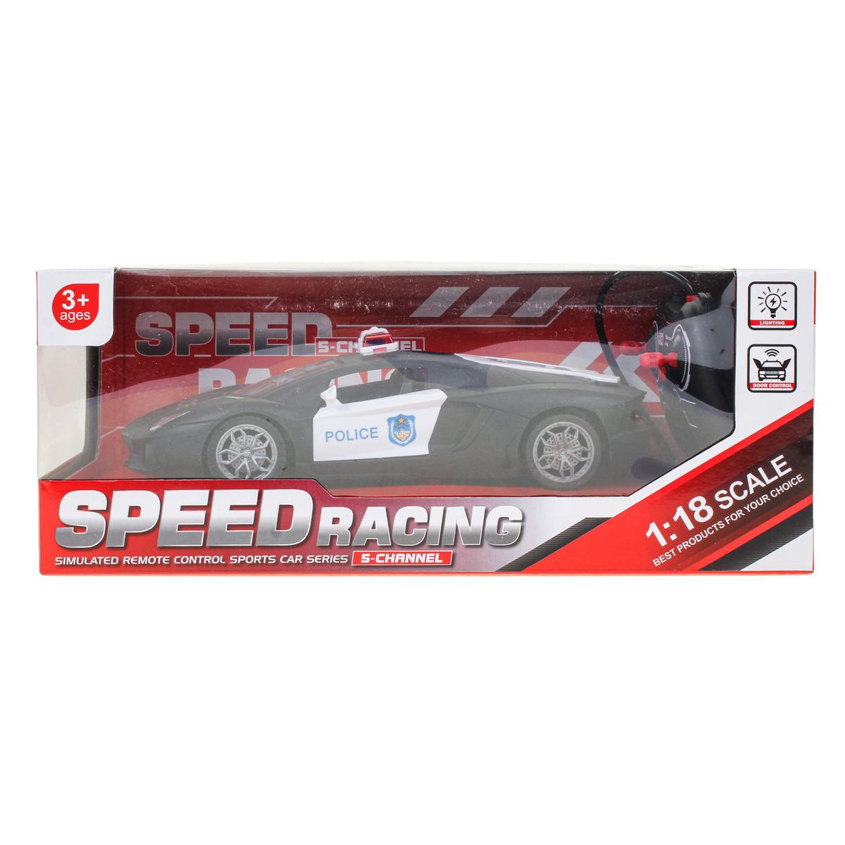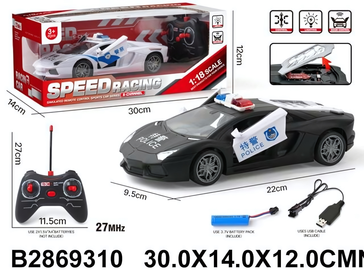 Машина на радиоуправлении в масштабе 1:18 подарит ребёнку захватывающие гонки и ощущение настоящего управления спортивным автомобилем. Реалистичный дизайн в полицейском стиле, световые эффекты и открывающаяся дверь делают игру ещё интереснее и увлекательнее. Это отличный выбор для детей от 3 лет, которые любят скорость и активные развлечения.