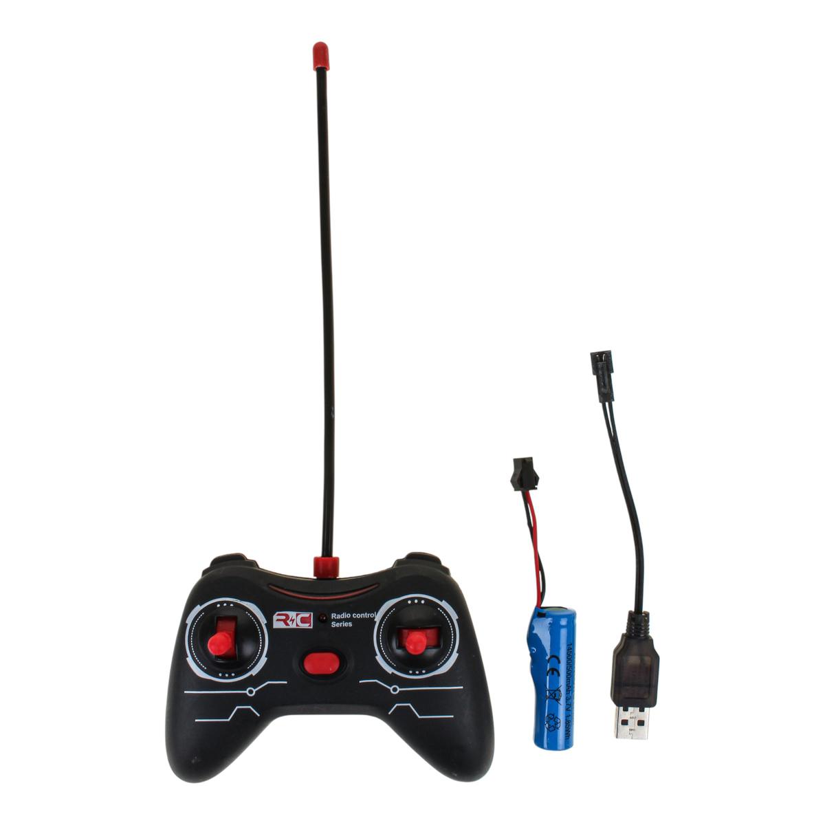 Корпус выполнен из прочного пластика, устойчивого к активной игре. Длина машинки составляет 22 см — оптимальный размер для домашних заездов и игр на ровной поверхности. В комплект входит аккумулятор 3.7v и USB-кабель для зарядки, что избавляет от необходимости постоянно покупать батарейки для самой машины. Это удобно и практично для повседневного использования.