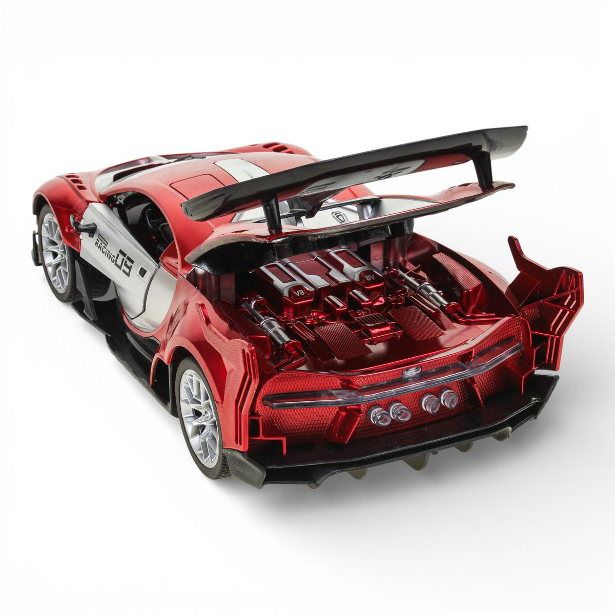 Модель управляется с удобного пульта и поддерживает движение вперед и назад, а также повороты влево и вправо. Частота 2.4g обеспечивает стабильное управление без помех. Машинка оснащена световыми эффектами, а открывающиеся двери и поднимающийся отсек с имитацией двигателя добавляют игре динамики и реализма.