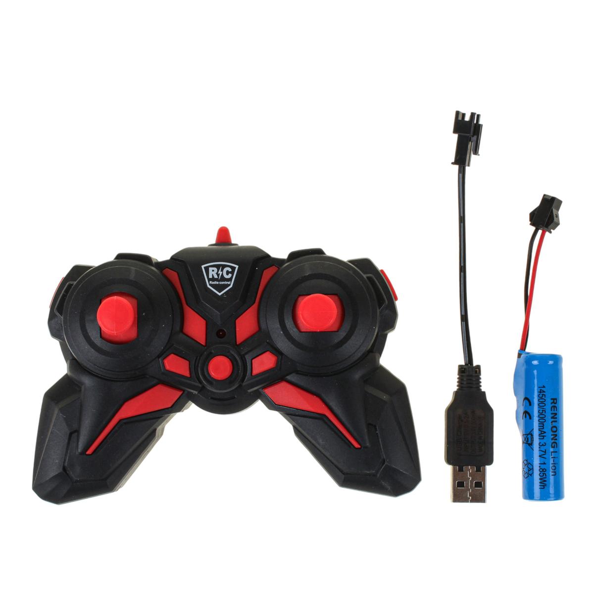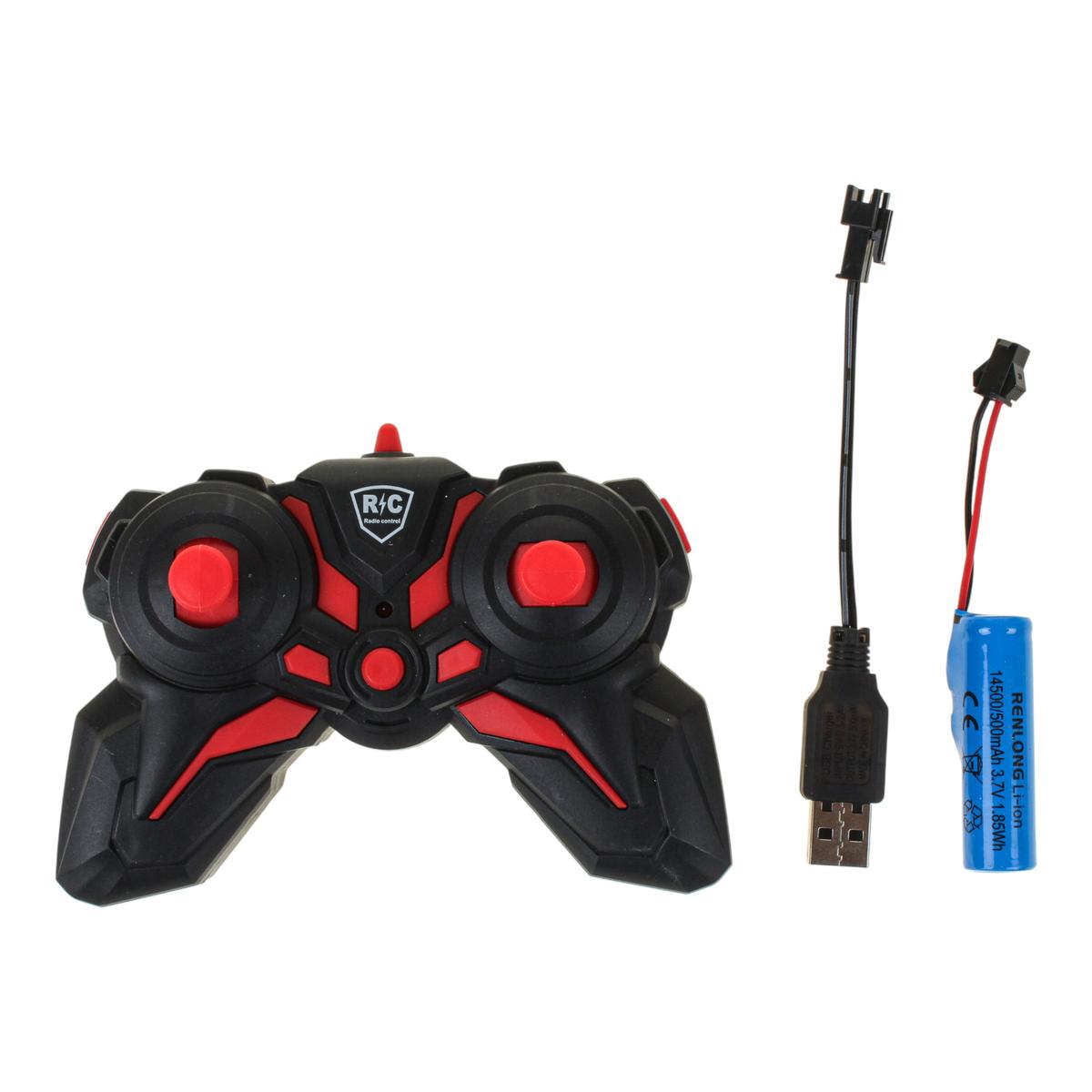 В комплект входит аккумулятор и USB-кабель для зарядки, что избавляет от необходимости постоянно покупать сменные батарейки для самой машинки. Достаточно подключить кабель к источнику питания, и игрушка снова готова к заездам. Пульт работает от батареек.